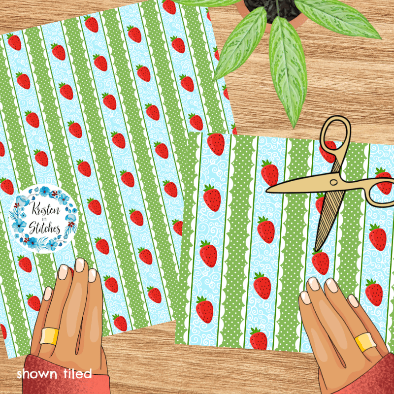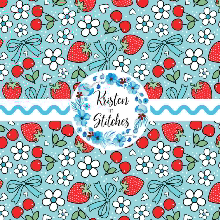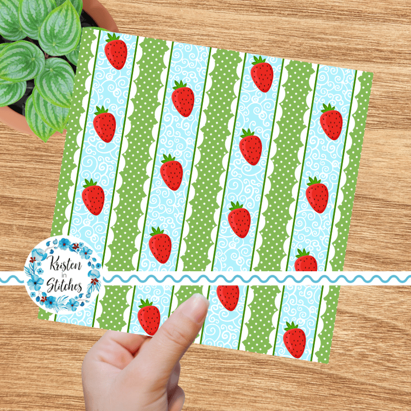Sweet strawberries with scalloped lace and polkadots.