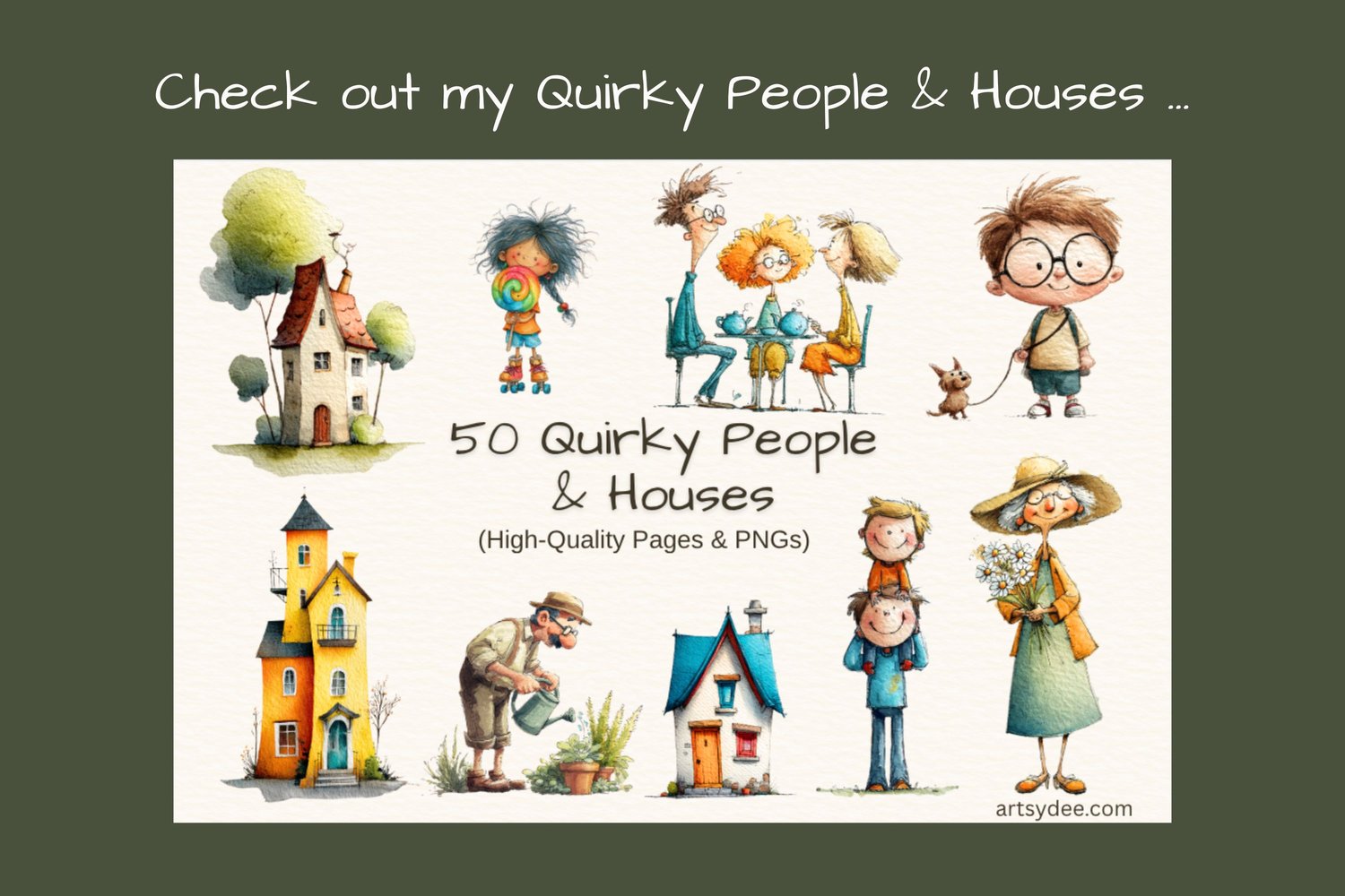 Pairs Beautifully With: Love quirky illustrations? This set goes wonderfully with my Quirky People & Houses collection! Combine them for whimsical village scenes, cosy cottage vibes, and storytelling spreads. Find it here: https://payhip.com/b/EcGHZ