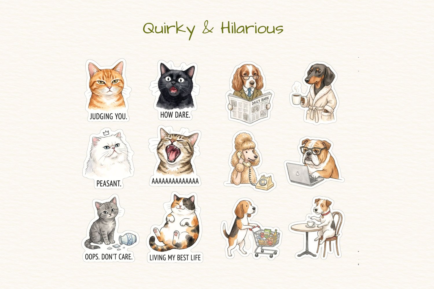 Meet the most adorable, personality-packed pets! This collection features wonderfully wonky dogs and cats with heaps of character - from sleepy pups to sassy felines, all ready to bring charm and humour to your creative projects.