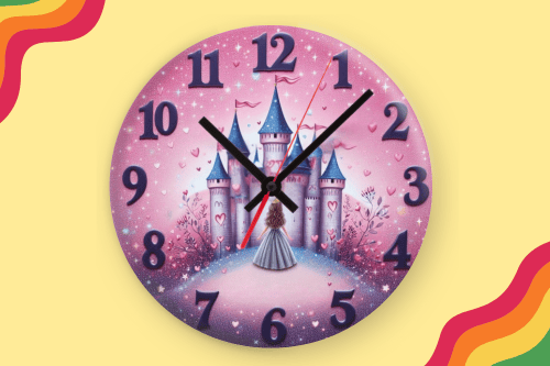 Bring the wonder of storybooks to life with this charming Royal Castle Wall Clock Art. Featuring a majestic castle in a dreamy princess-themed setting, this design is ideal for sublimation projects that spark imagination and joy. Perfect for adding a magical centerpiece to a child’s room or creating unforgettable gifts.