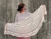 Fenwick is worked flat, from the top centre of the shawl outwards with increases used to create a crescent-shaped shawl. Picked up stitches, yarn overs and dropped stitches are used to form a range of textures throughout the design. Short row shaping is used at intervals at each end of the shawl to elongate the wingspan without adding depth. Short rows are also used to form the patterns of semi-circles that run across the middle and bottom of the shawl.