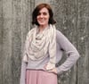 Gauge is checked by working R1-24 of the shawl pattern. After wet blocking, this section of the shawl should measure ~7” / 17.5cm in wingspan (i.e.: the length along the I-Cord at the top of the shawl) and ~2” / 5cm in depth down the centre of the shawl. Achieving exact gauge is not important for this accessory.