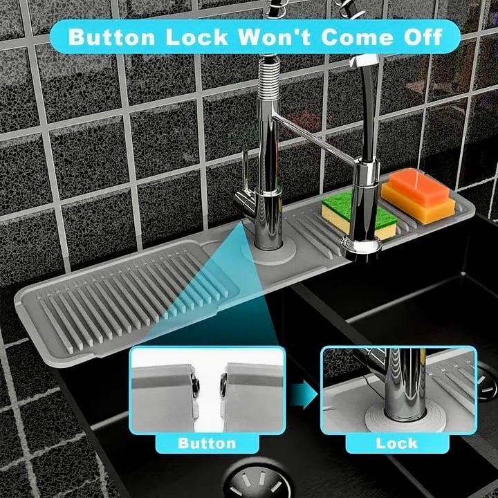 But what if you could say goodbye to messy countertops for good? This is not just a mat. Its mechanism is a high-quality, foldable silicone splash guard with a built-in drainage design and a secure button lock.