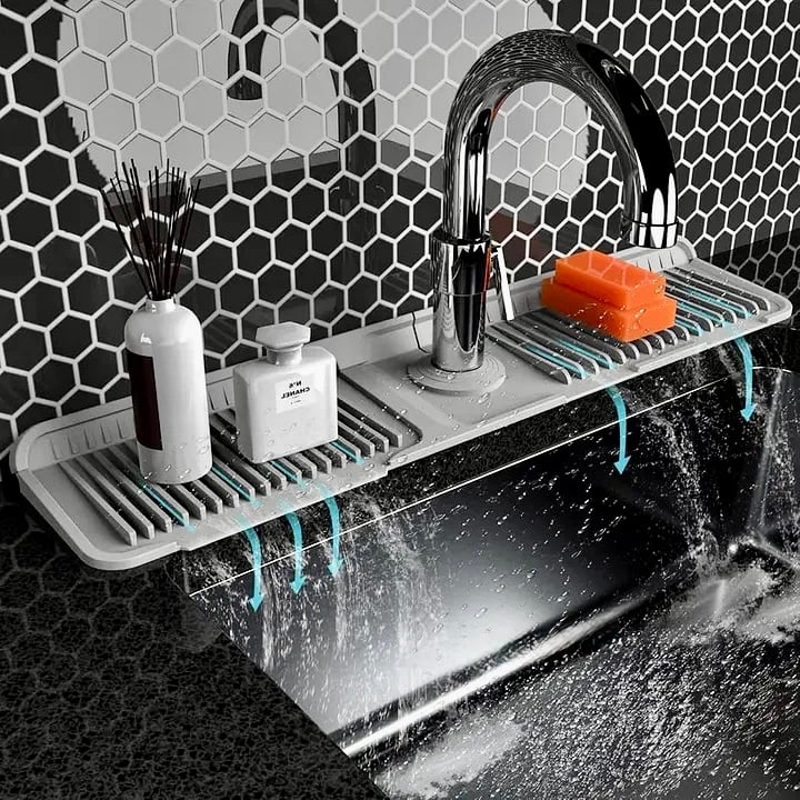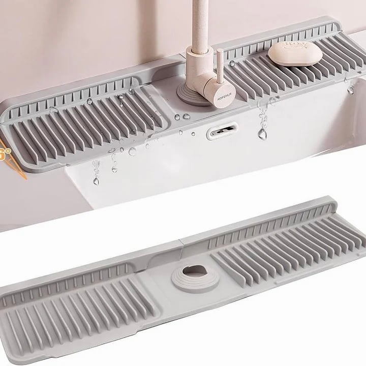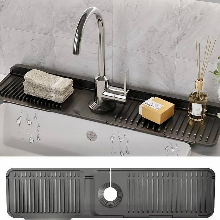 ✔ KEEP YOUR COUNTERTOP DRY, EFFORTLESSLY No more puddles around the sink! This silicone mat is designed to catch water drips and drain them away instantly, keeping your counter dry and clean.