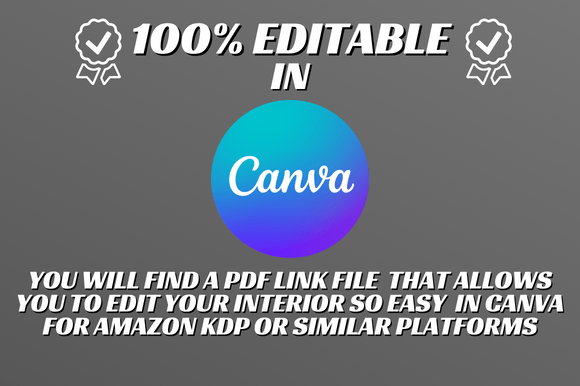 – Fully editable & customizable CANVA Interior for Amazon KDP & Similar Platforms, Allows you too edit your interior and Customize the text & fonts, add your own content so easily & available for everyone. you are free to change or add anything you want.