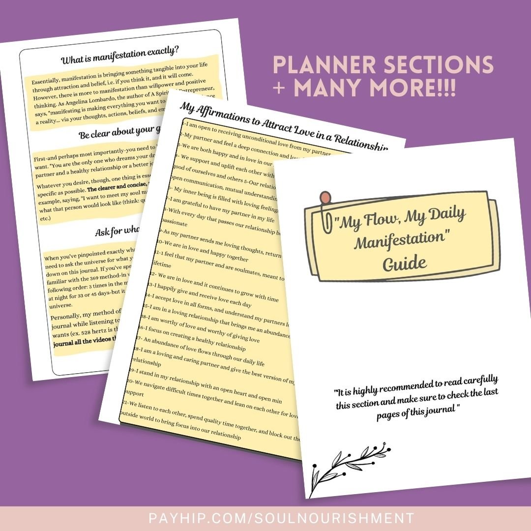 Introducing "My Flow, My Daily Manifestation Guide", a powerful tool designed to help you harness the law of attraction, tap into your inner power, and manifest your deepest desires each day. Whether you're seeking clarity, abundance, or inner peace, this guide provides you with the structure to align with your higher self and transform your life.