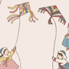 A set of 6 hand-drawn Seollal Korean traditional Hanbok kite flying color clipart illustrations!