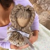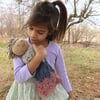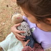 Rayan is another design named after one of my children. This is a memorial of sorts, for a child who did not live long. This type of primitive comfort doll is known in our house as a lovey or a wubbie. It is a topsy turvy doll as well. The lace is reversible, and there is a head for each side, one that is awake and one for sleeping. Perfect for a quiet time toy, or as a bedtime comforter, or as a “church doll” that a little one can bang around during services without making a noise to disturb those around her.