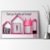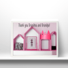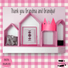 Thank You card for grandparents. Pink princess modern style, pink and white gingham print. Instant download. Print, cut, and fold.