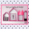 This is a fun thank you card for grandparents!  Modern and unique. Kids will love it. Back of card is a printed pink gingham.