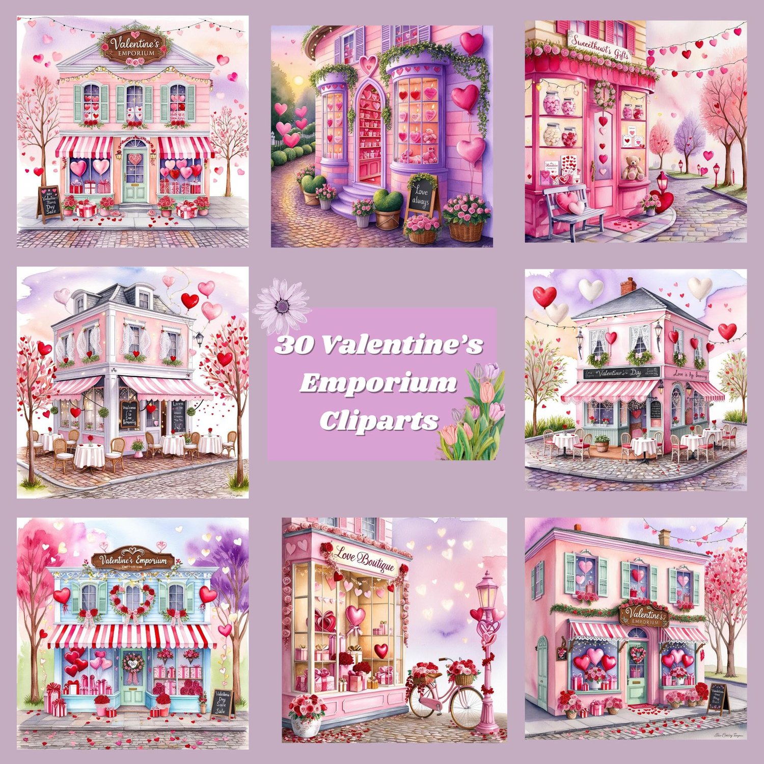 30 Valentines Emporium Cliparts for Junk Journals, Scrapbook, Printed Crafts, High-Quality Images, Watercolor Arts