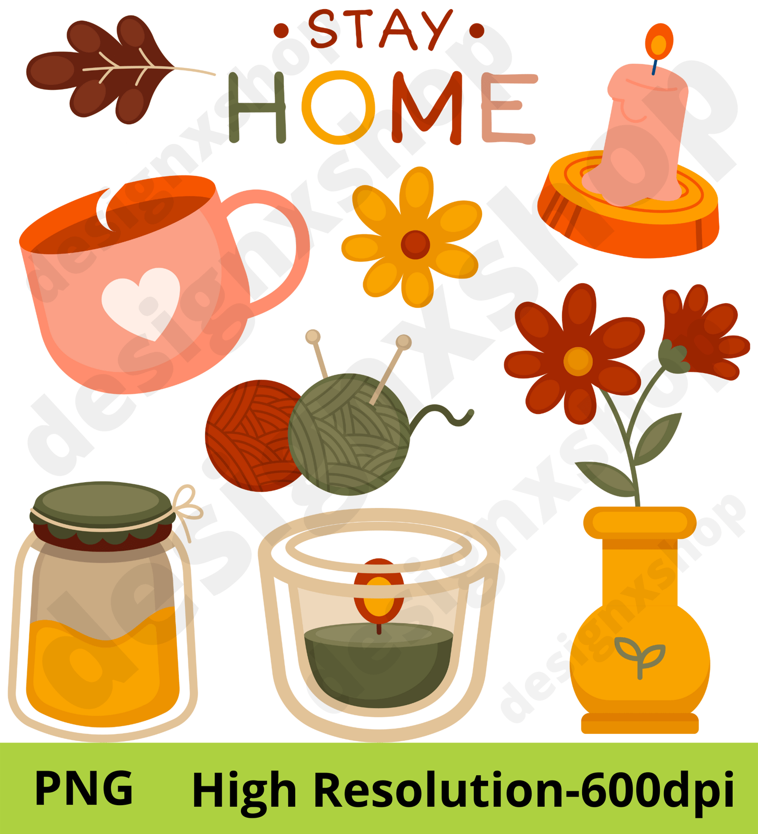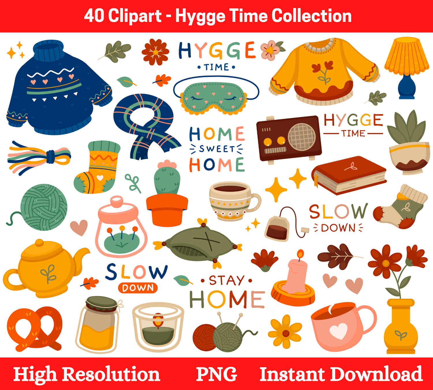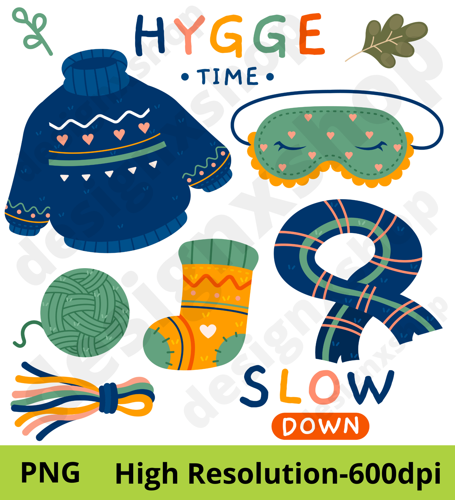 40 - Hygge Time Collection, Hi-res digital CLIP ART (with transparent background).