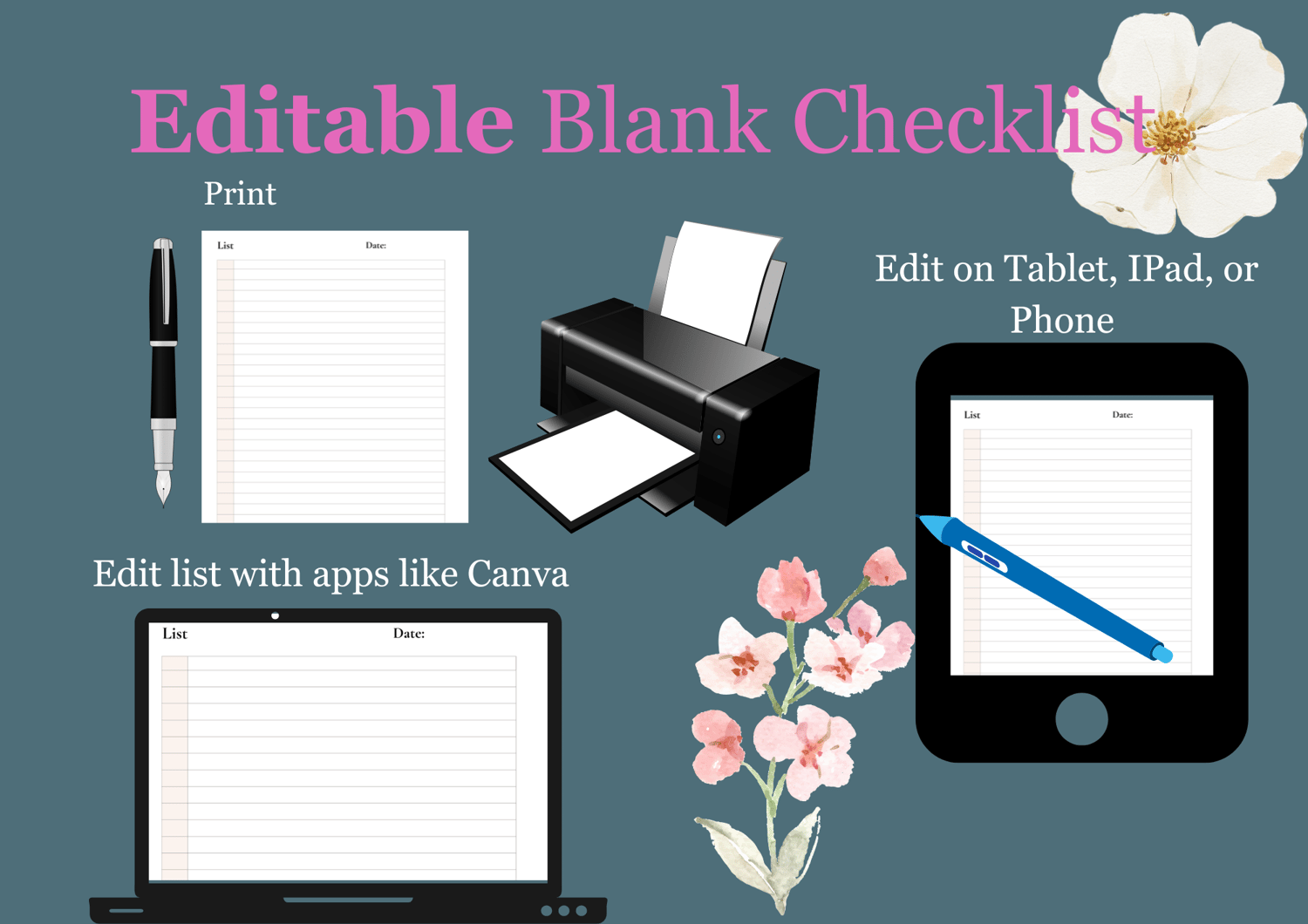 These 7 Editable Blank Checklist Templates can be printed or edited digitally on your device. These blank checklists can be used for: