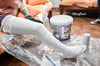 After the plaster dries, she takes her first steps with the management around her house, has breakfast, makes a home office.