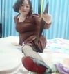 When she was in kindergarten, she was caught in a fire and burned her legs.