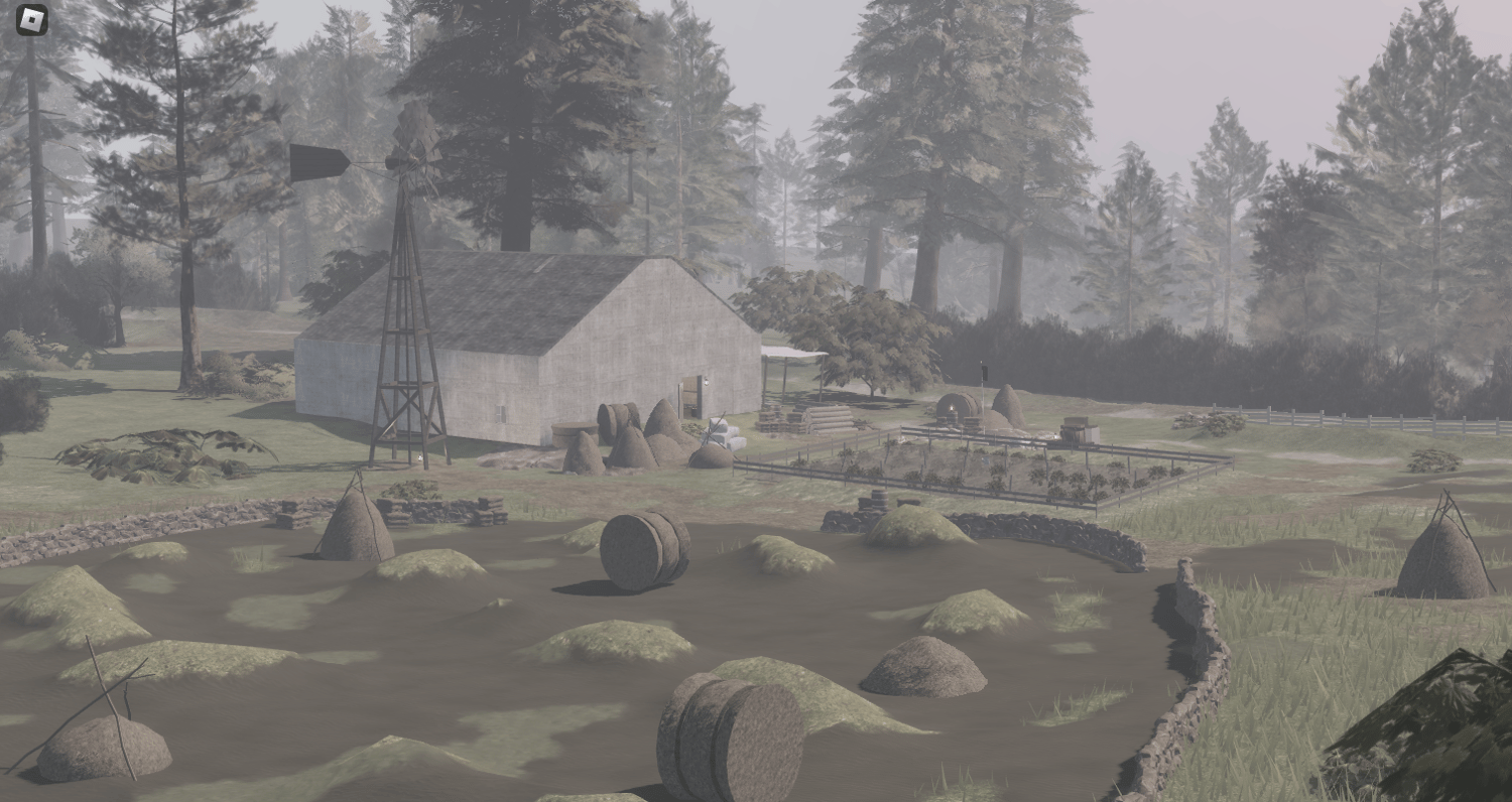 - Realistic PBR props: haybales, fences, shell craters, and destroyed trees.