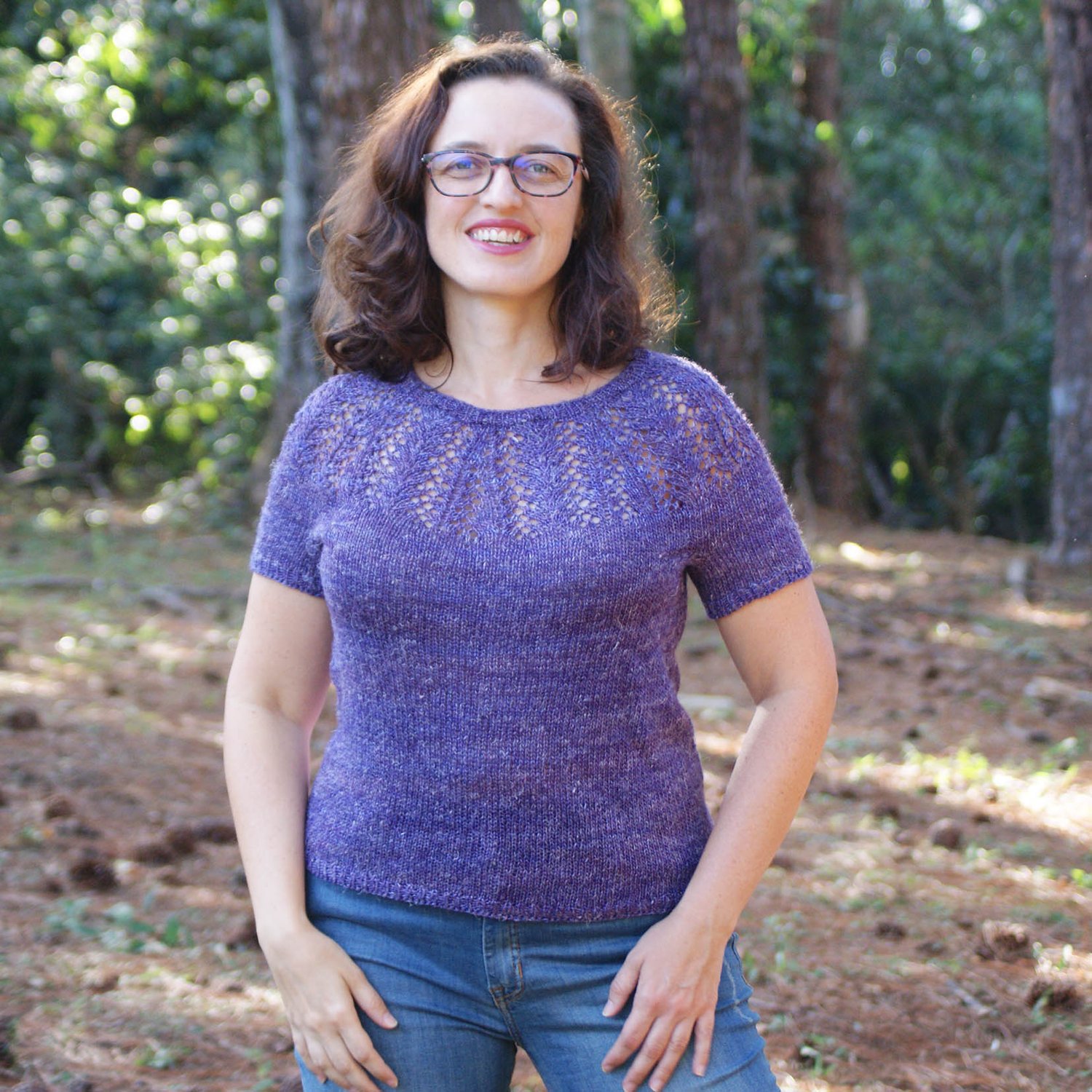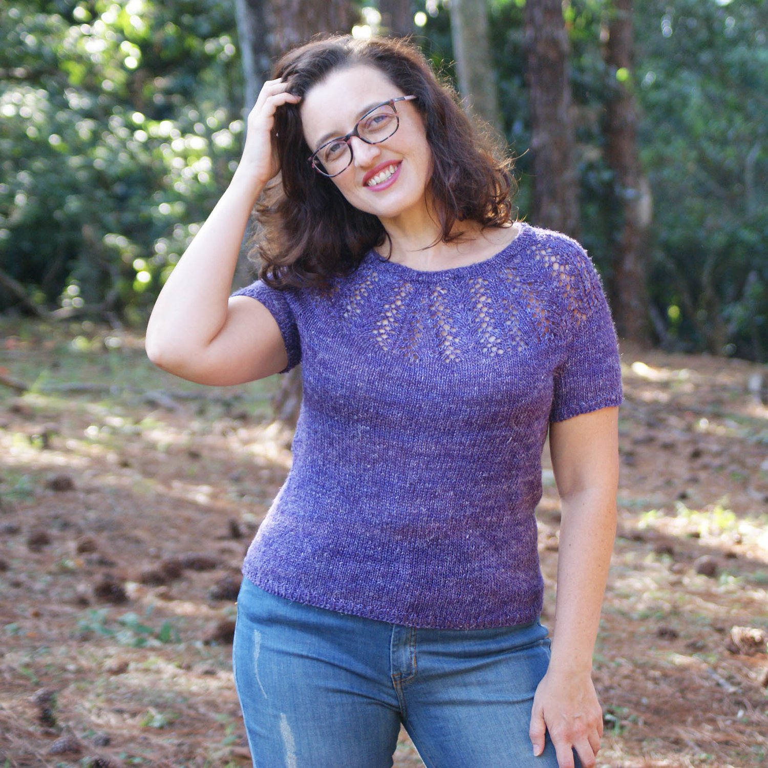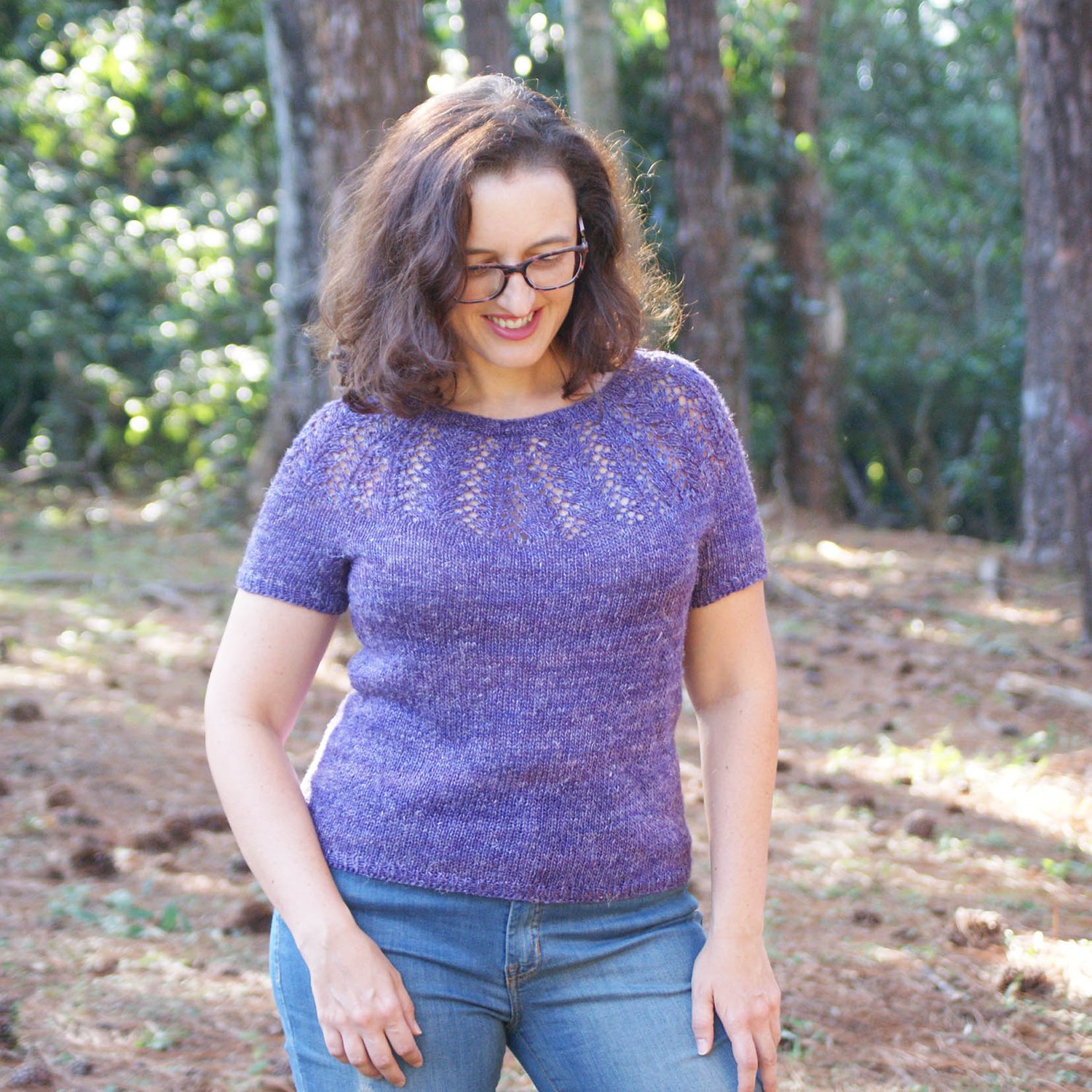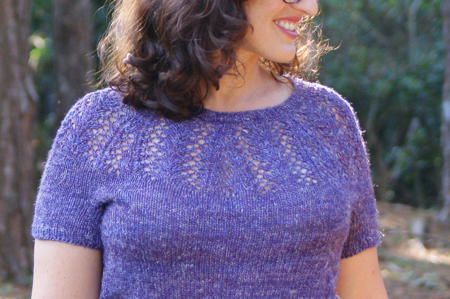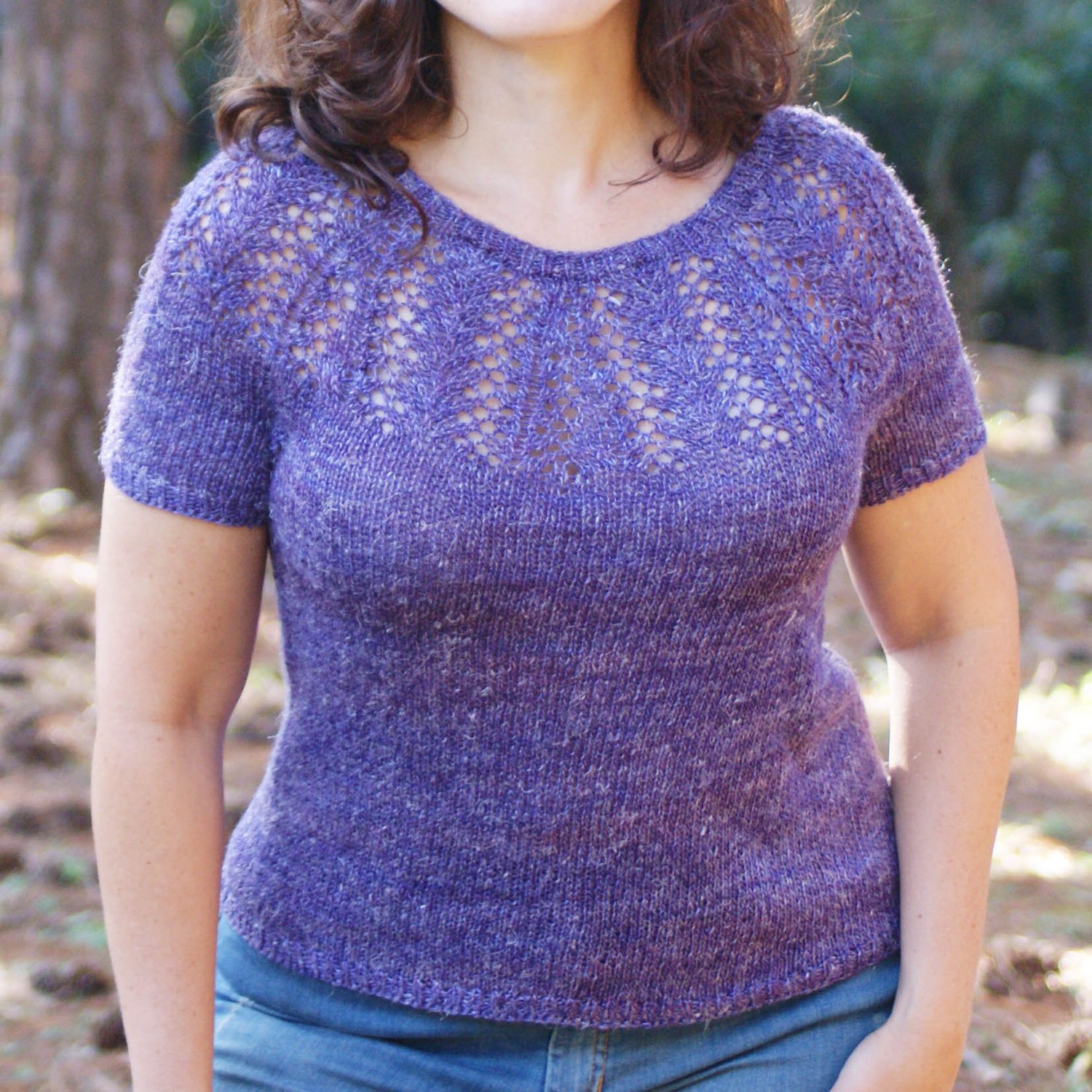Knit seamlessly from the top down, the pattern includes both written instructions and a charts to guide you through the lace in the yoke section. This tee was carefully designed for a great shoulder fit and comes in 9 sizes (from 32 to 64 inches in bust circumference).