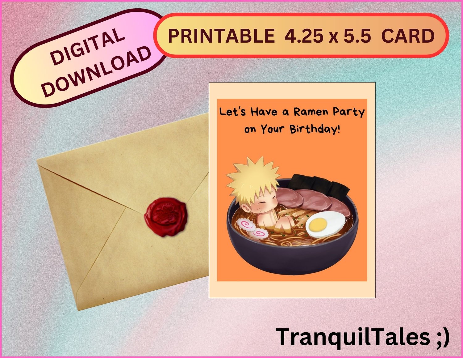 RAMEN PARTY - UZUMAKI NARUTO - BIRTHDAY CARD - 4.25" x 5.5" - PDF FILE - NARUTO SHIPPUDEN - NARUTO UZUMAKI