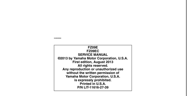 2014 Yamaha FZ09E FZ09EC Service Manual Part No. LIT-11616-27-39