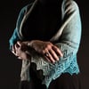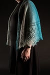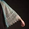 It is worked in segments, using short row shaping with wraps and turns to show the gradient of the yarn to best effect. Each wrong side row of the segment is shorter than the previous one, to create wedge shapes, with the lace pattern across the widest part of the wedge.