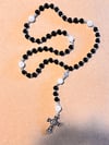This distinguished men's rosary features bold black coated glass beads paired with pristine white crystal accents, creating a powerful yet elegant devotional piece. Handcrafted with masculine strength in mind, the refined silver-tone details and substantial bead sizes make this rosary perfect for men seeking a rosary that reflects both their faith and their character.