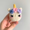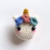 The Unicorn Macaron is a sweet, little floral amigurumi dessert that serves as a lovely gift or cute and cheery desk buddy! You can easily customize this fantasy macaroon using different yarn colors for the flowers, horn, cookie, and frosting filling. You can also add sprinkles, beads, or other embellishments to this popular French treat. There are many holidays and occasions to use it as a present, such as Valentine’s Day, Easter, Christmas, birthdays, weddings, anniversaries, bridesmaids gifts, and appreciation or thank you gifts!