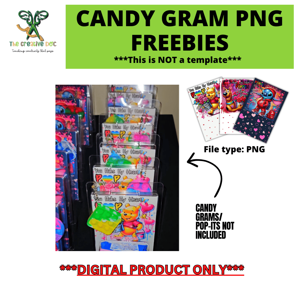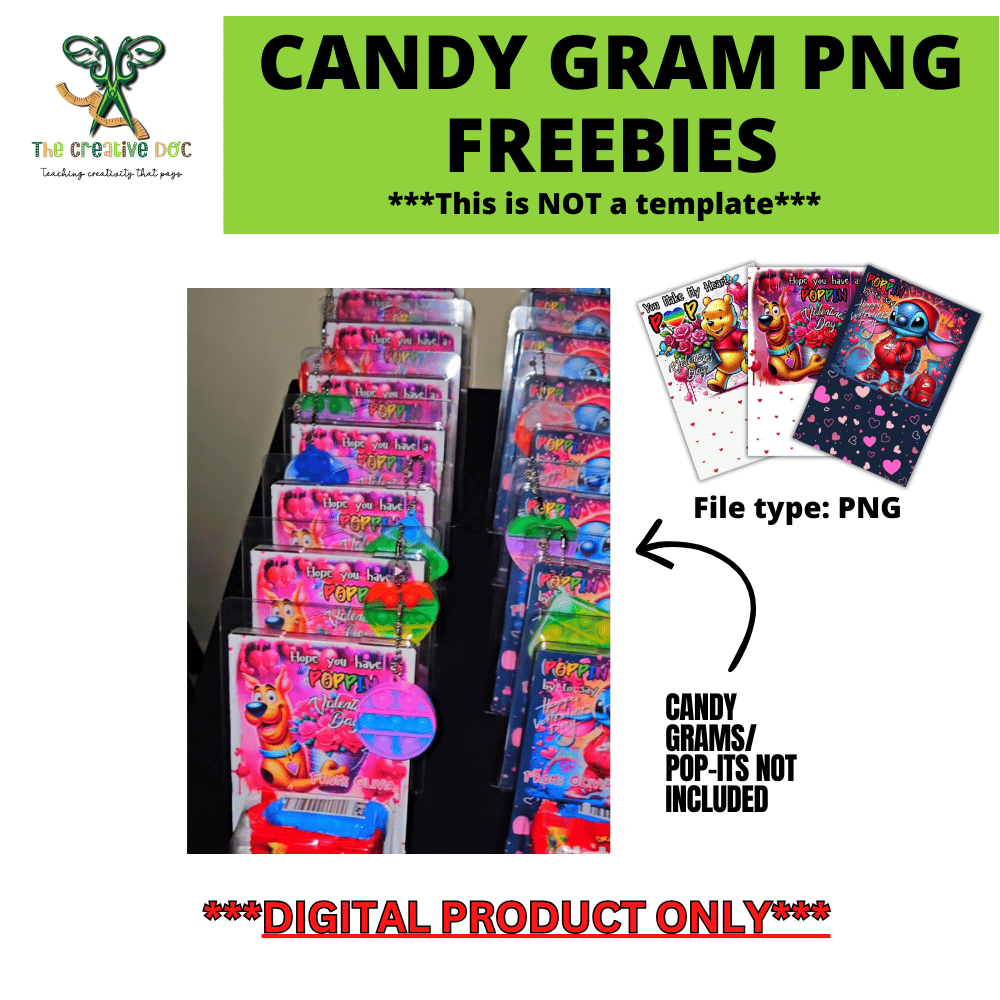This freebie includes 3 Candy Gram PNG designs you can use to create fun, festive Valentine’s Day candy grams for personal use or small projects.