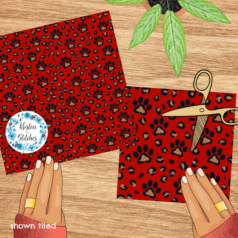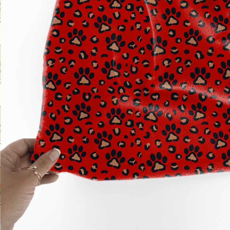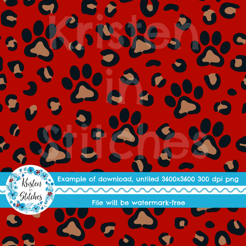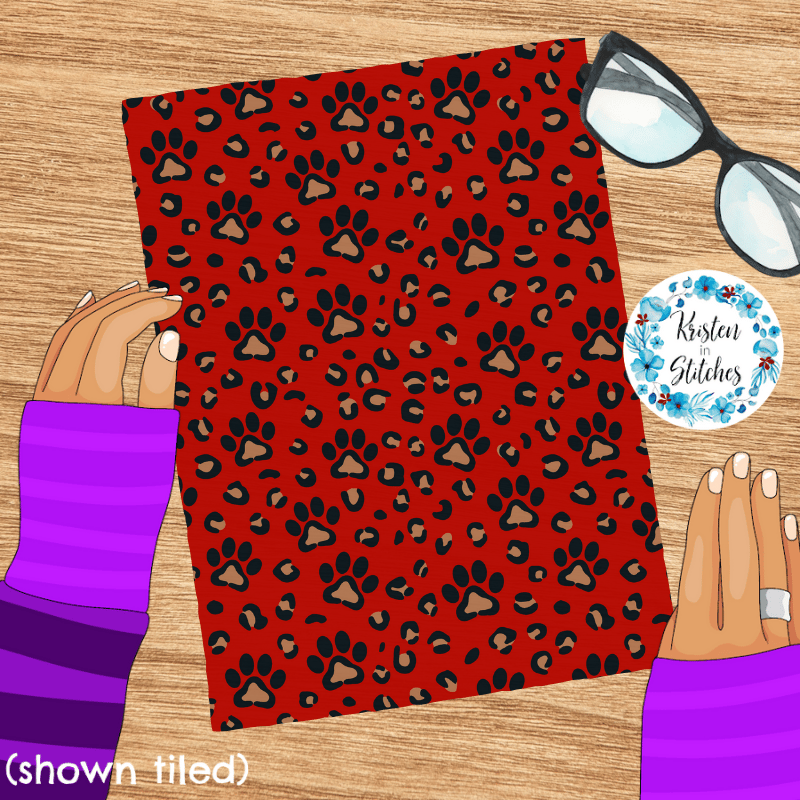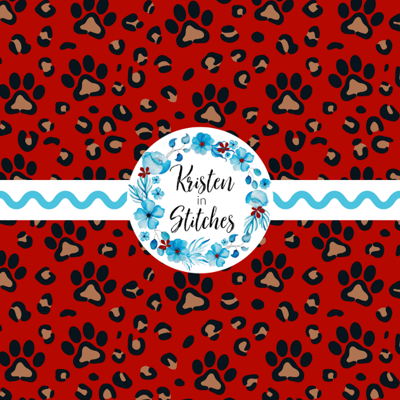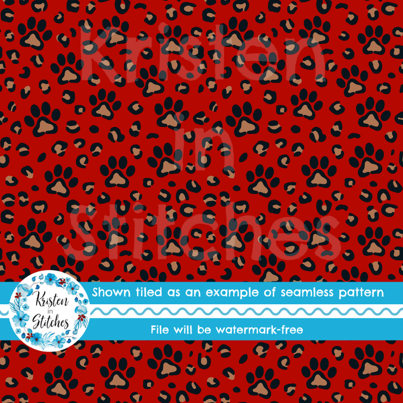 Dog Paw Prints Wild Animal Leopard Valentine Seamless Pattern Red and Black