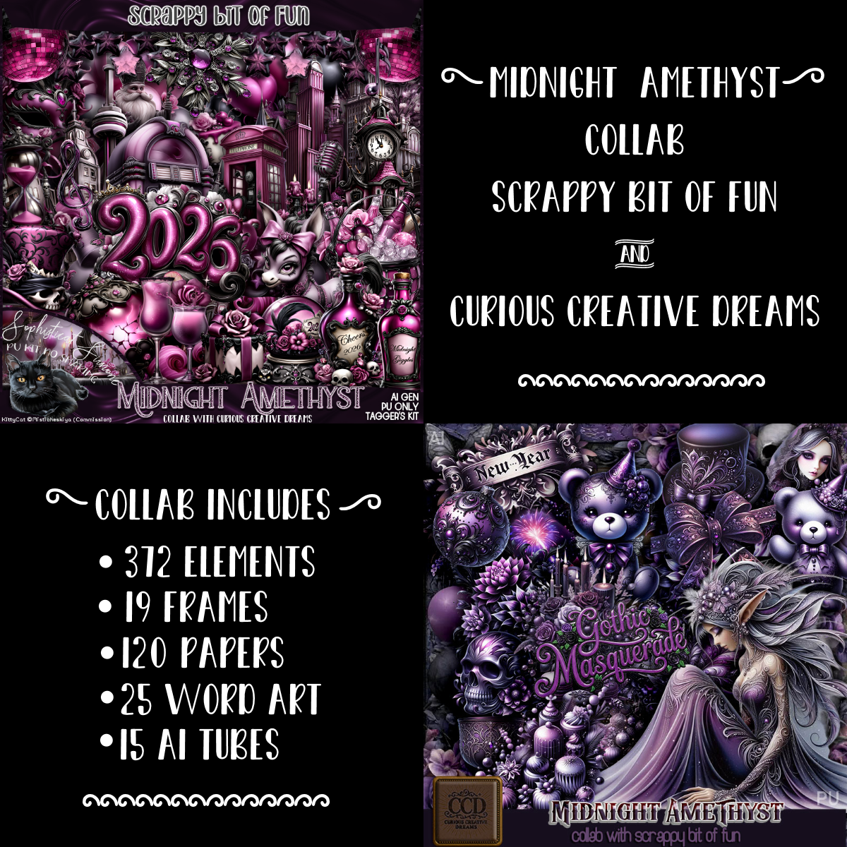 Whether you're scrapping friendship shenanigans, girly-girl glam, or cozy countdowns, Midnight Amethyst rings in a gothic New Year with sophisticated sparkle and curiously layered delights.