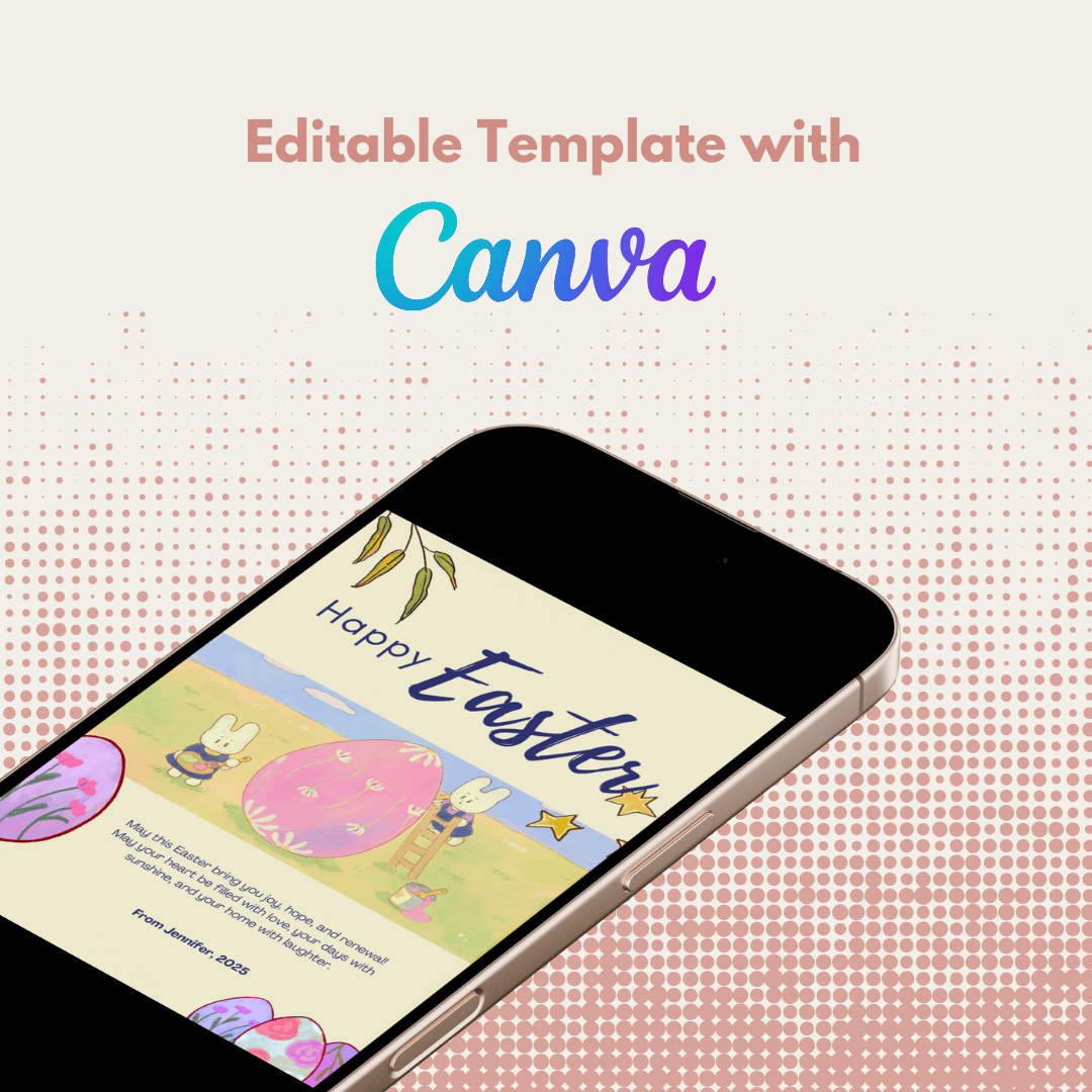 Easily edit the text to personalize your Easter message, download and print for a physical invitation, or send it digitally to spread happiness this April! Whether you're planning an Easter egg hunt, a festive brunch, or simply sharing warm wishes, this editable template makes it easy.