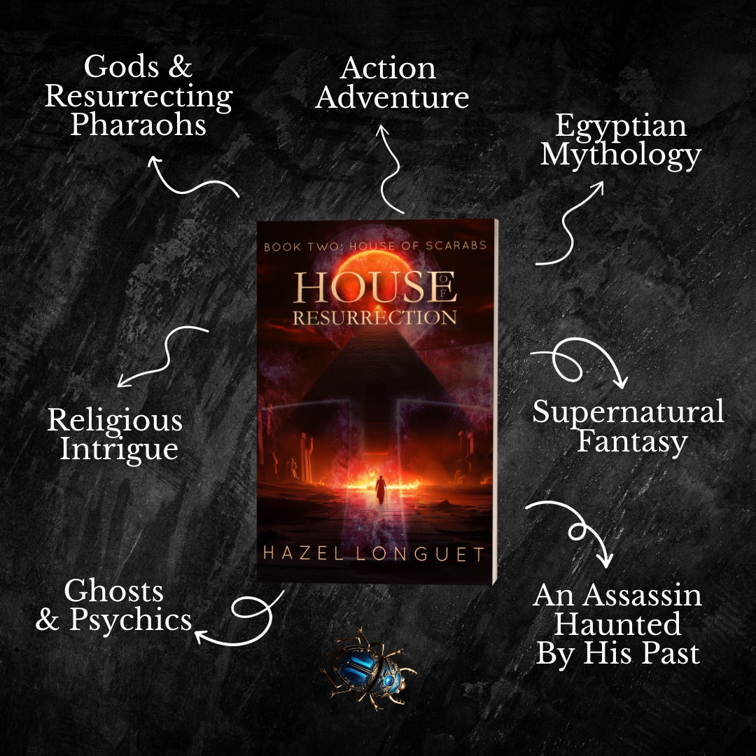 House of Resurrection is the second book in the House of Scarabs supernatural fantasy series. If you like ancient mythology, action adventures and magical quests, then you’ll love Hazel Longuet’s fast-paced novel!