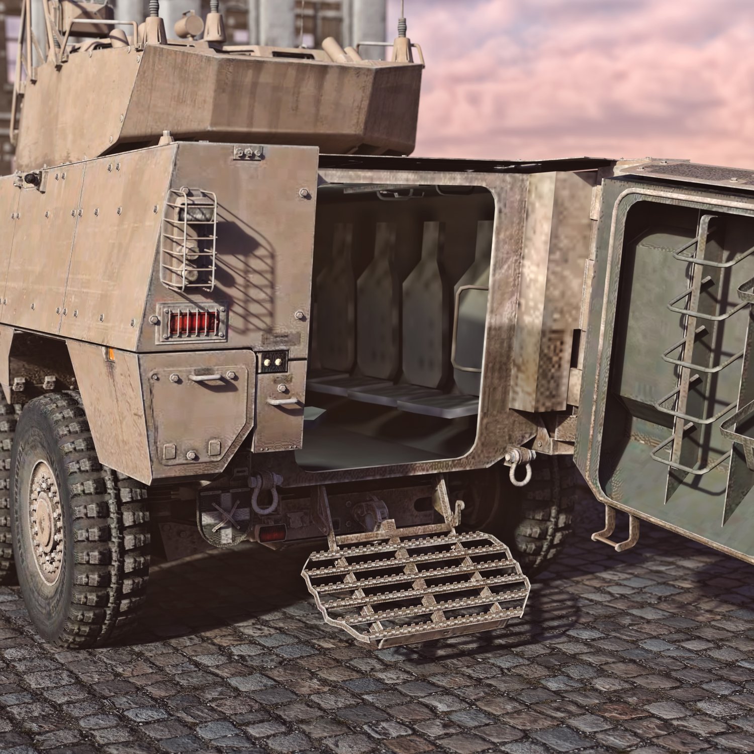 Famous South African Infantry Fighting Vehicle, providing troops with decent protection and a some serious fire support. Used also by Finnish forces. Sturdy, trustful and good looking :) Includes a rigged turret with a gun that can be rotated in any direction. Plenty of hatches rigged too for more realistic pictures and dispatches to any side needed.