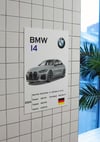 This poster captures the sleek design and advanced electric performance of the i4, showcasing BMW's commitment to innovation and sustainability.