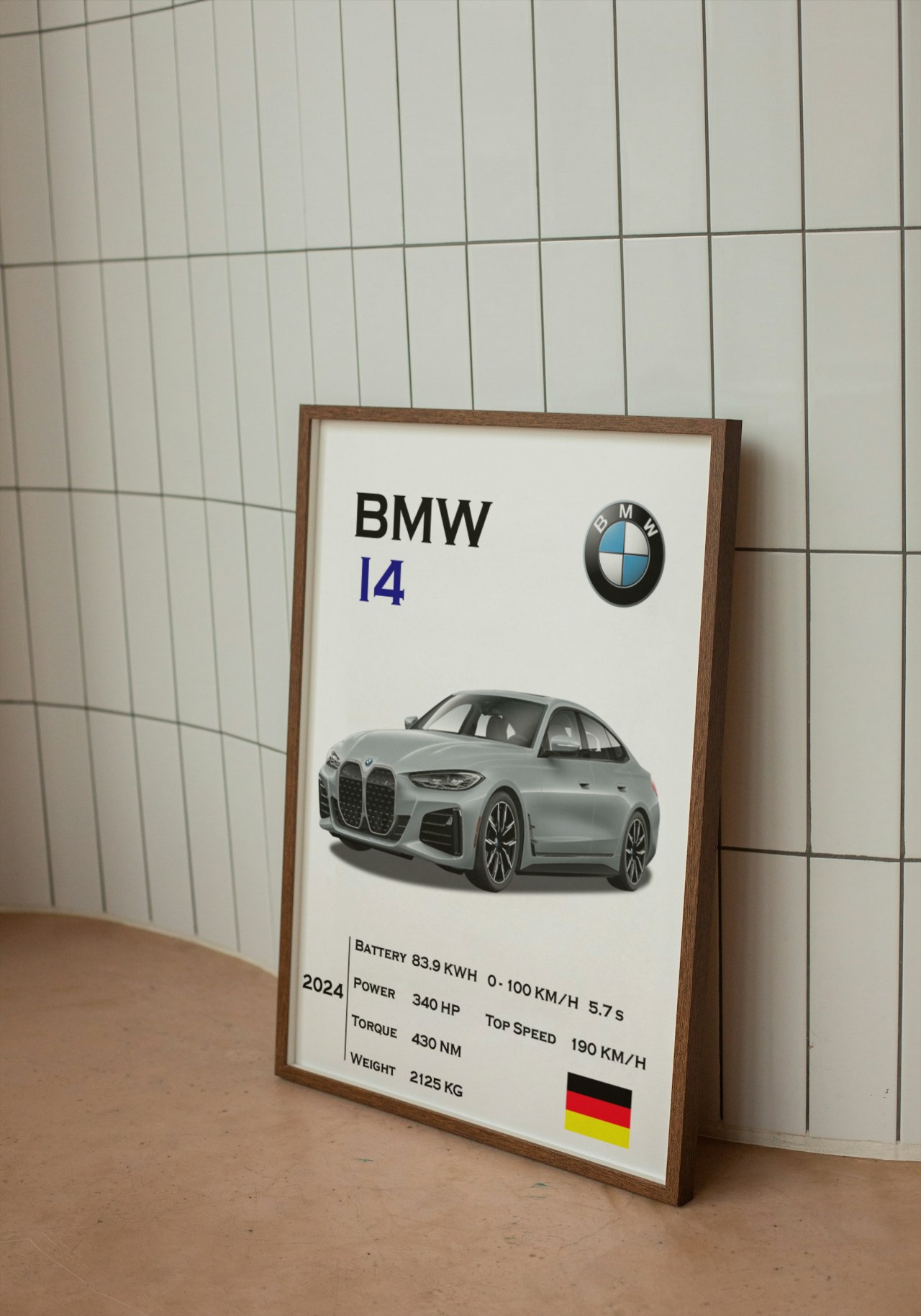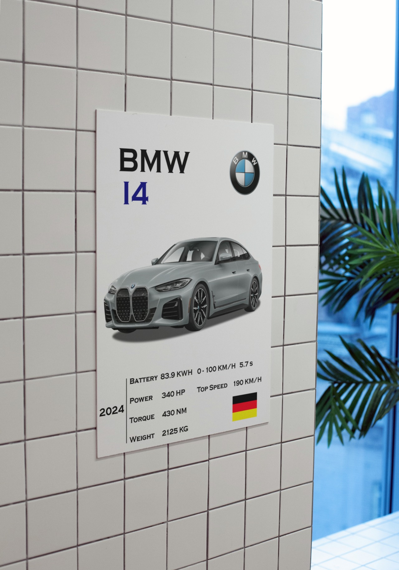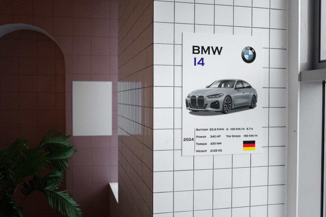 Whether you're an electric vehicle enthusiast or simply appreciate forward-thinking design, our BMW i4 2024 digital poster is a striking addition to any space.