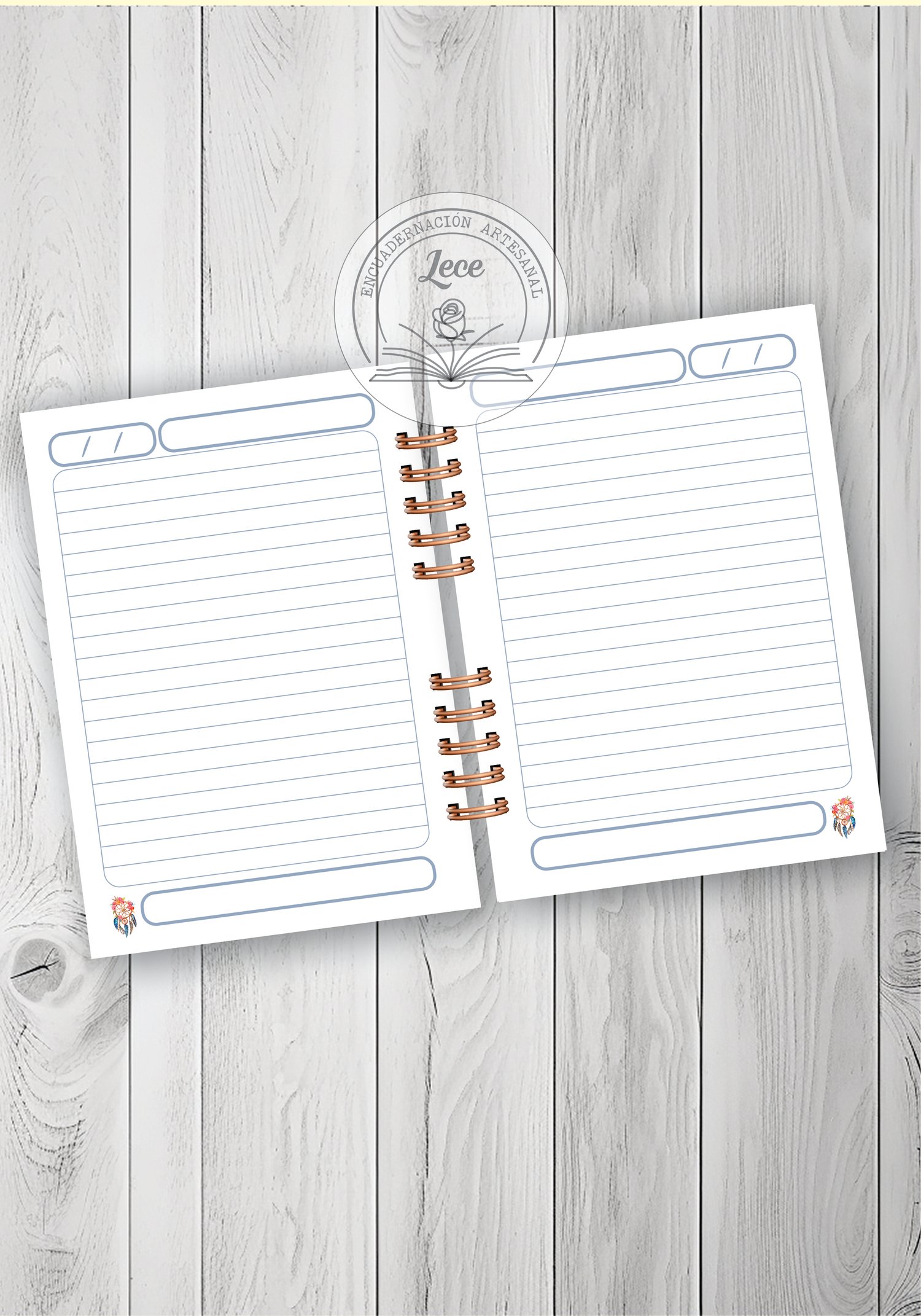 - 1 modelo de Interiores de 100 hojas con sus variantes para imprimir en tamaños A5 y A6 para anillado y costura