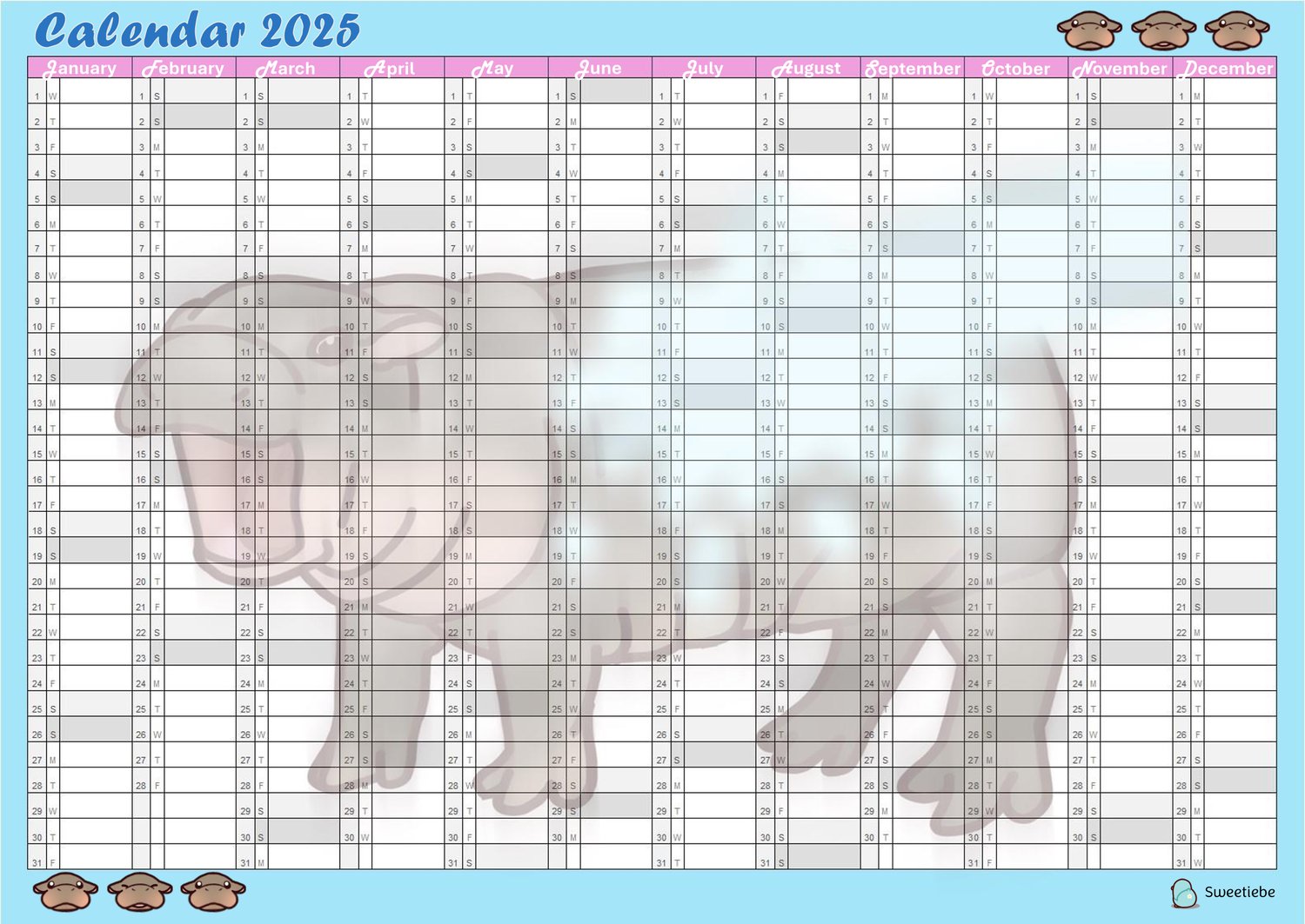 Make a splash in 2025 with this lovable hippo-themed yearly calendar planner! Featuring a cute and chubby hippo illustration, this single-page calendar is available as a PDF file for use on your digital devices or printing out to decorate your space. Whether you’re organizing important dates or enjoying its joyful design, this planner is perfect for hippo fans or anyone looking for a mix of fun and functionality.