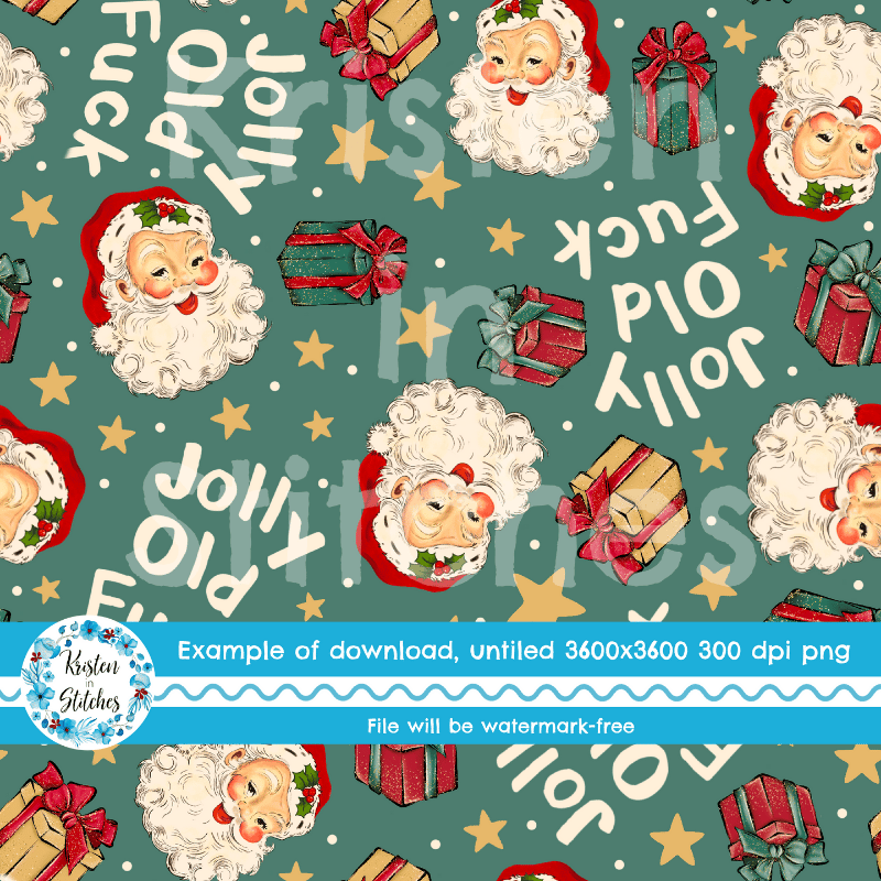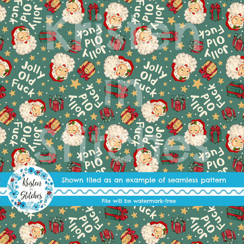 Jolly Old Fuck Sarcastic Christmas Santa Seamless Pattern
