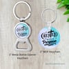 Keychain options: Bottle Opener Keychain are metal and have a 1" image. Round Keychains are made of MDF and are 2". Great for everyday use and make great gifts.