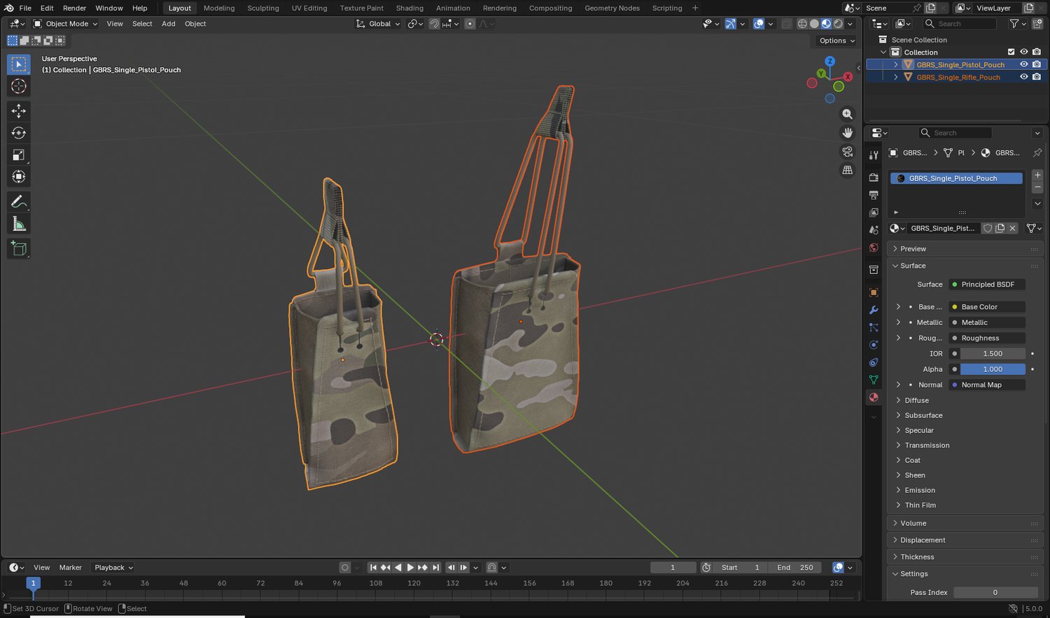 Game-ready 3D models of the GBRS Pistol and Rifle magazine pouches. Great for games such as Arma 3, DayZ, Reforger, Ready or Not, etc. This model was made with care and with easy rigging in mind demonstrated by the grid-like topology.