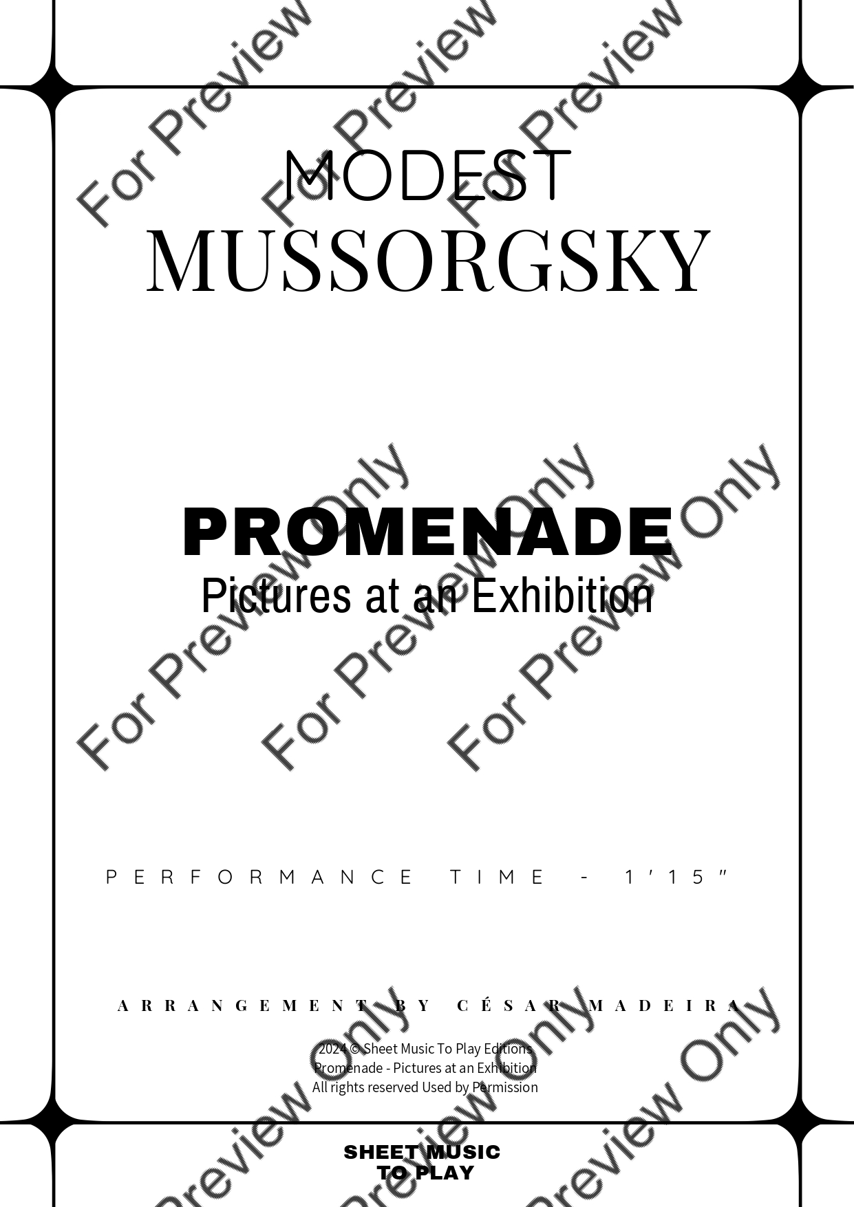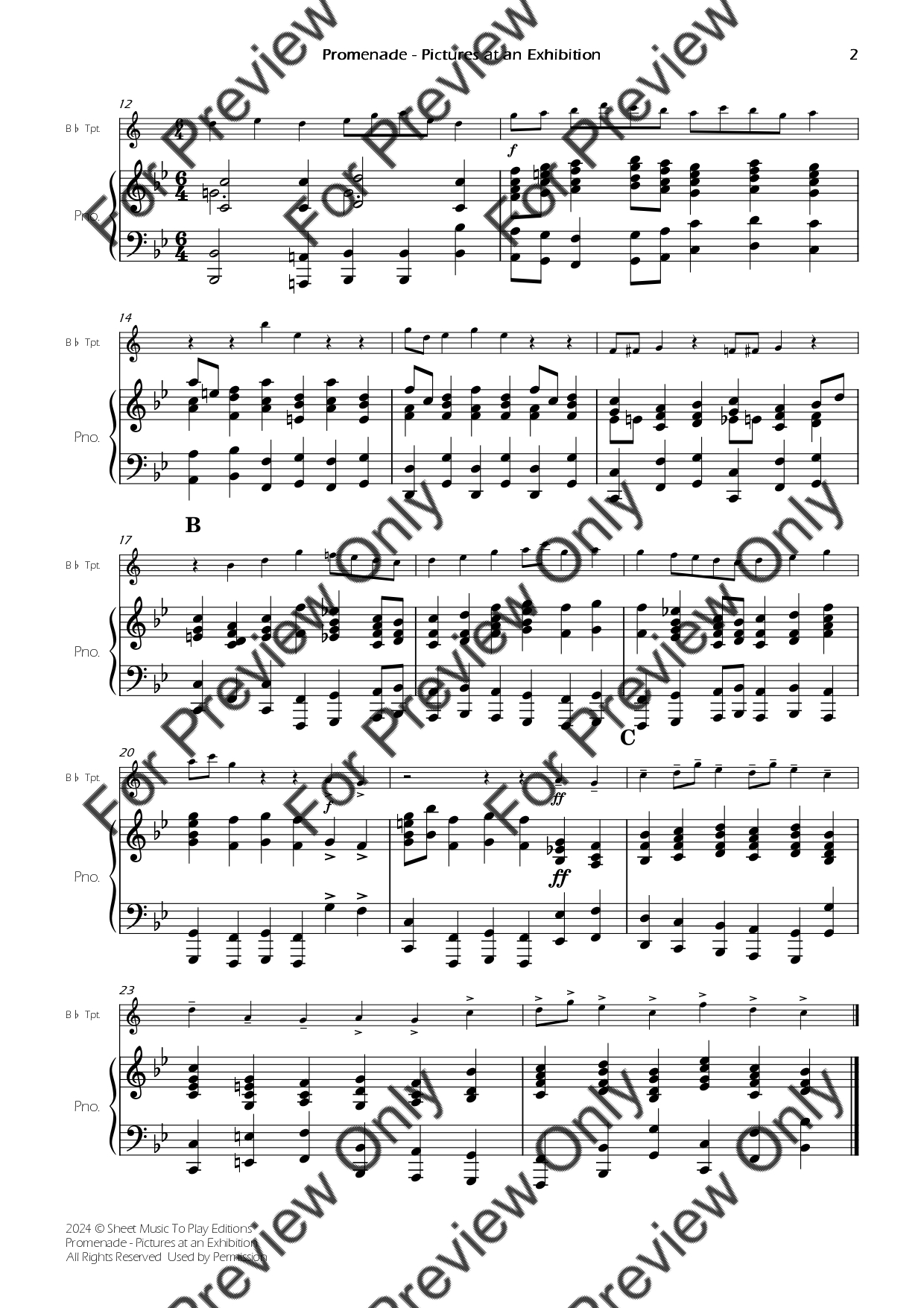 Promenade from Pictures at Exhibition by Mussorgsky and Ravel. Arrangement for Bb Trumpet and Piano. With Full Score and Individual Parts. Have fun!