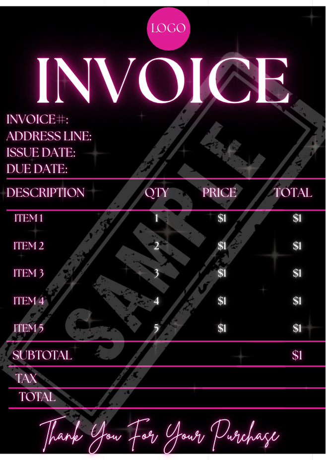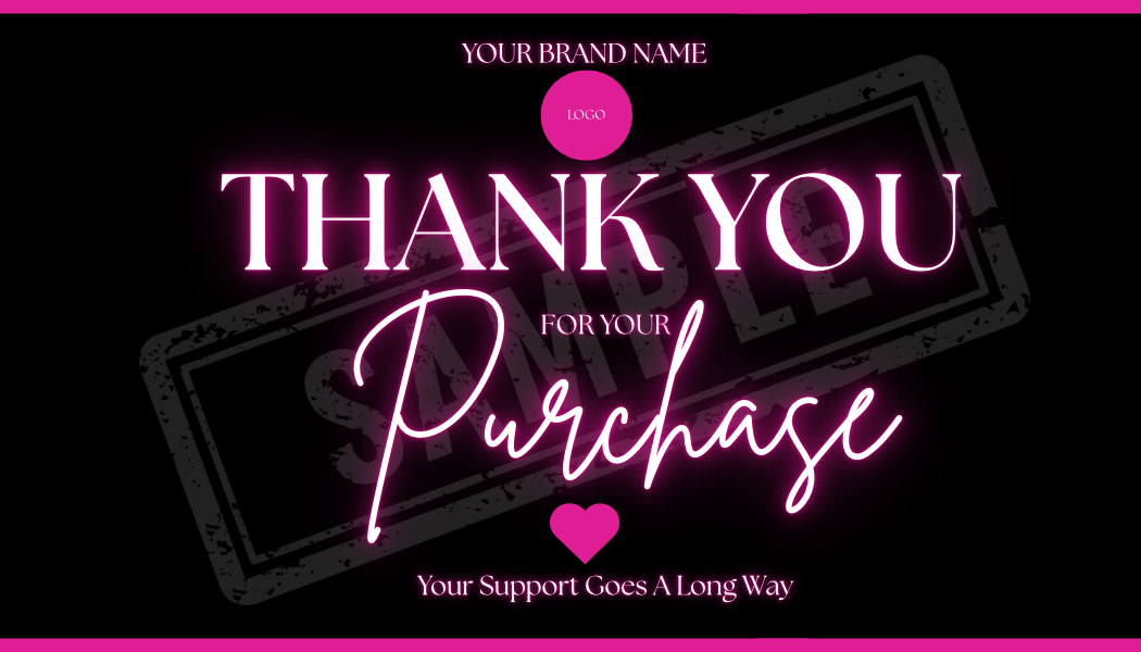 You’ll receive a custom designed business card, thank you card, gift certificate, invoice, and packing slip. Perfect for leaving a lasting impression on your customers and keeping your business organized.