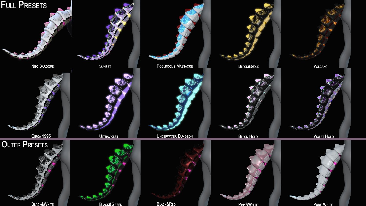 ☆ Toggle to hide each horn shape, tail, and tail spikes.