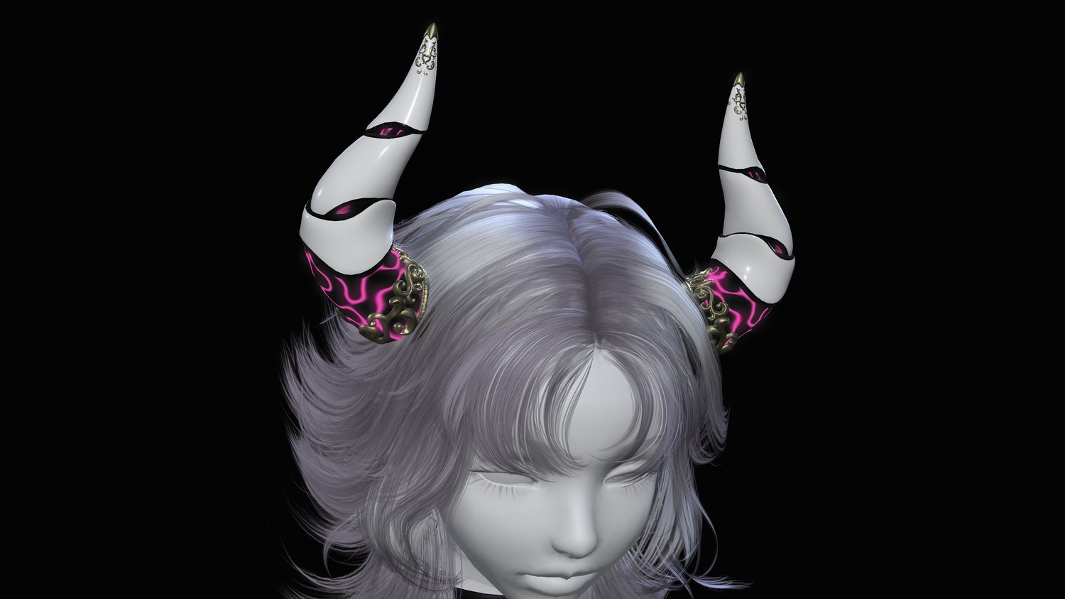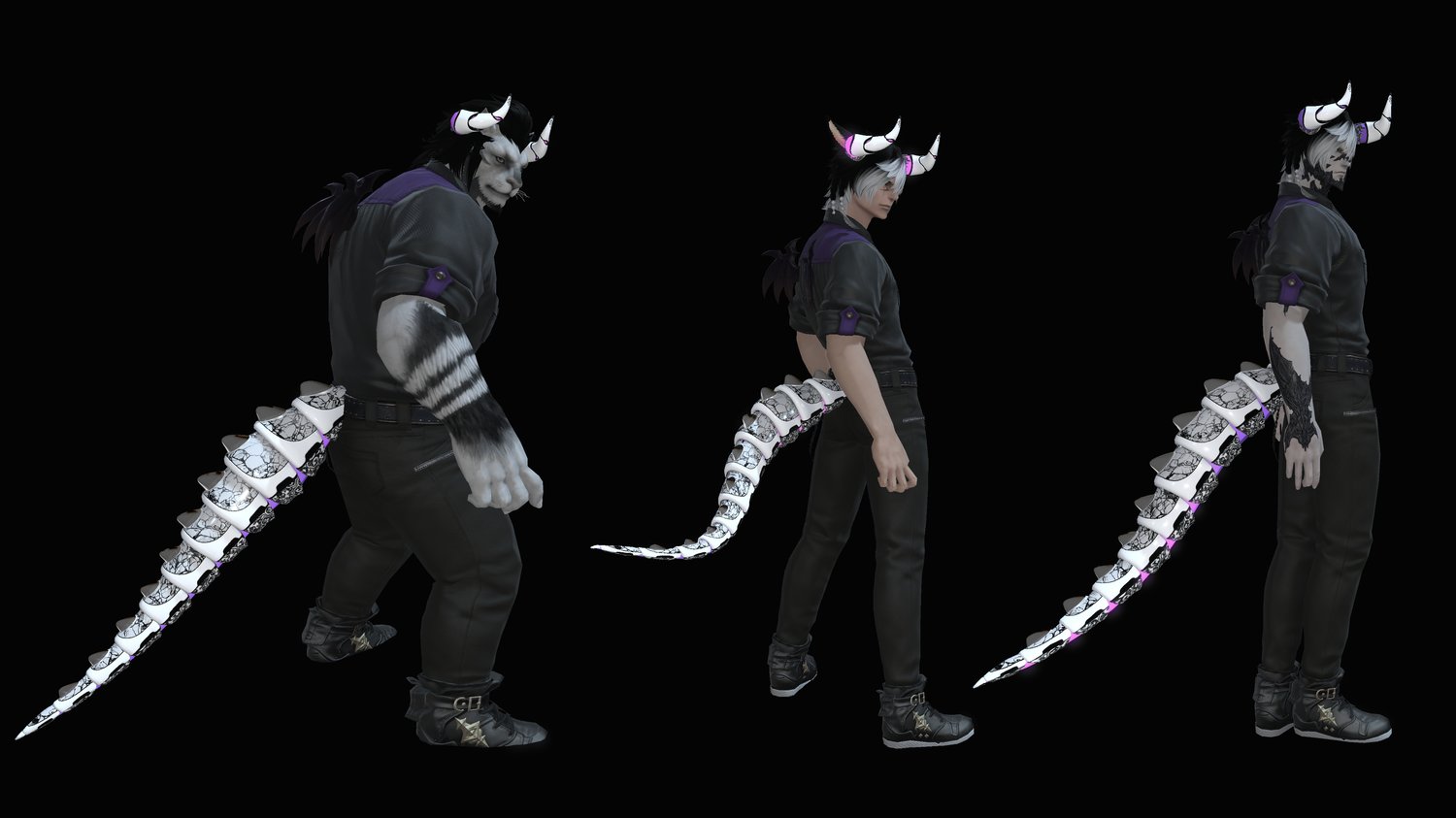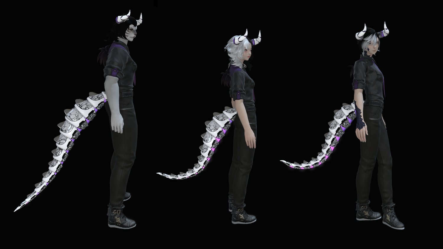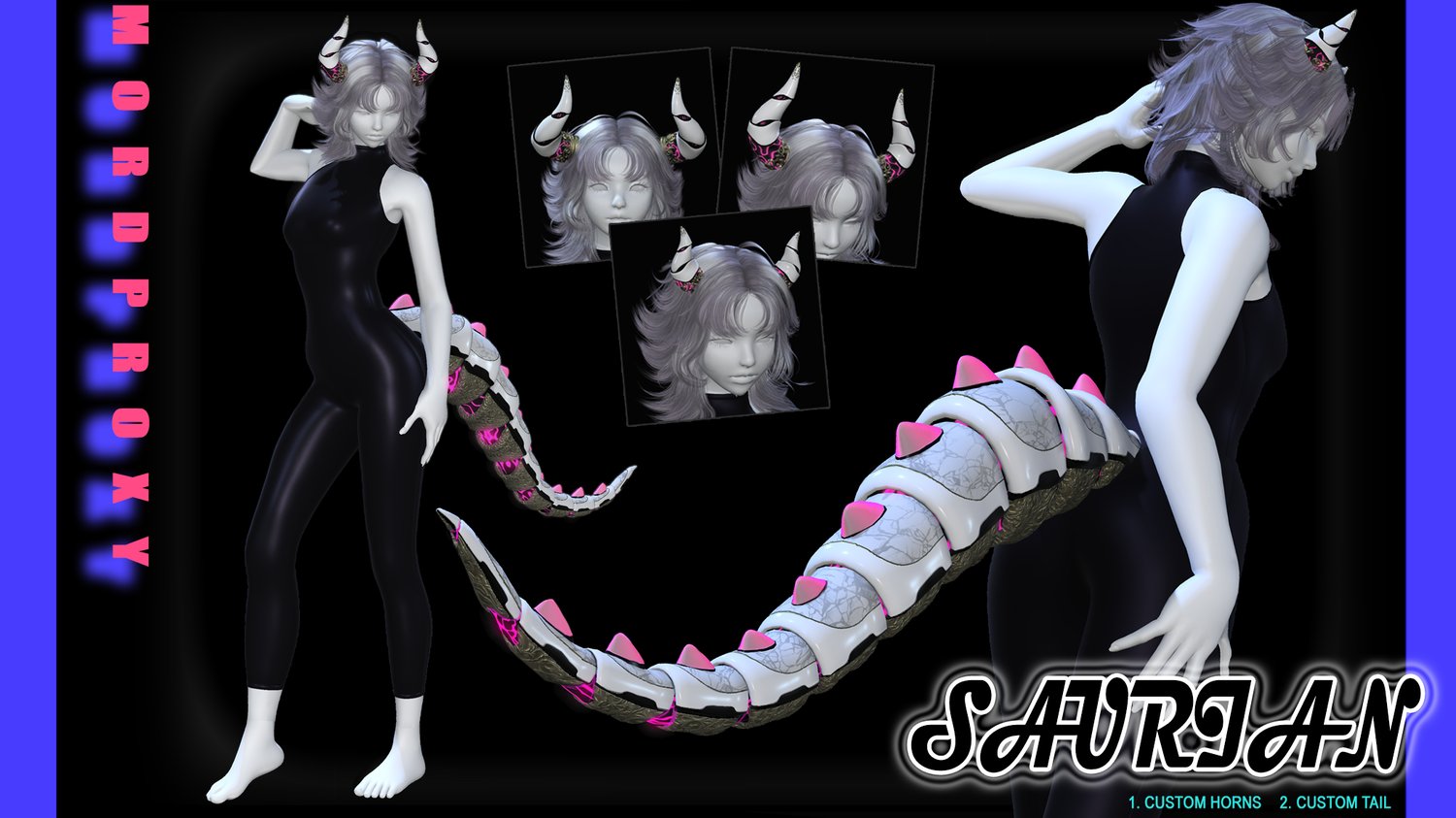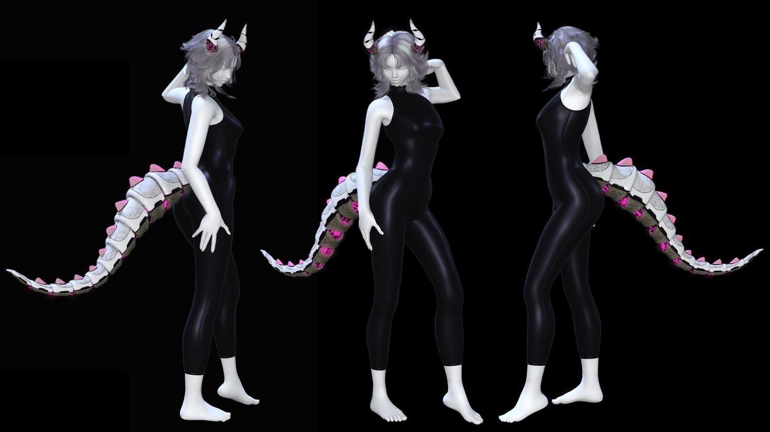 Custom mesh horns and tail set for M-F tailed races (Cats, Dragons and Tigers).