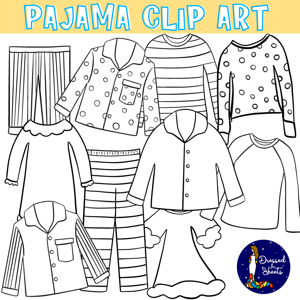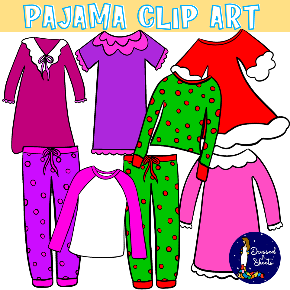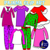This clip art set has a variety of pajamas! It includes gowns, pants, and tops.
