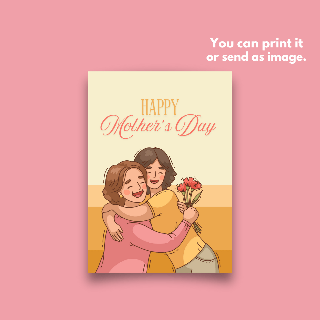 This illustration captures a heartfelt moment between a mother and daughter, making it the perfect printable gift for daughters and family to give to their mothers. The classic and simple design is ideal for any celebration, bringing warmth and joy to this special occasion.