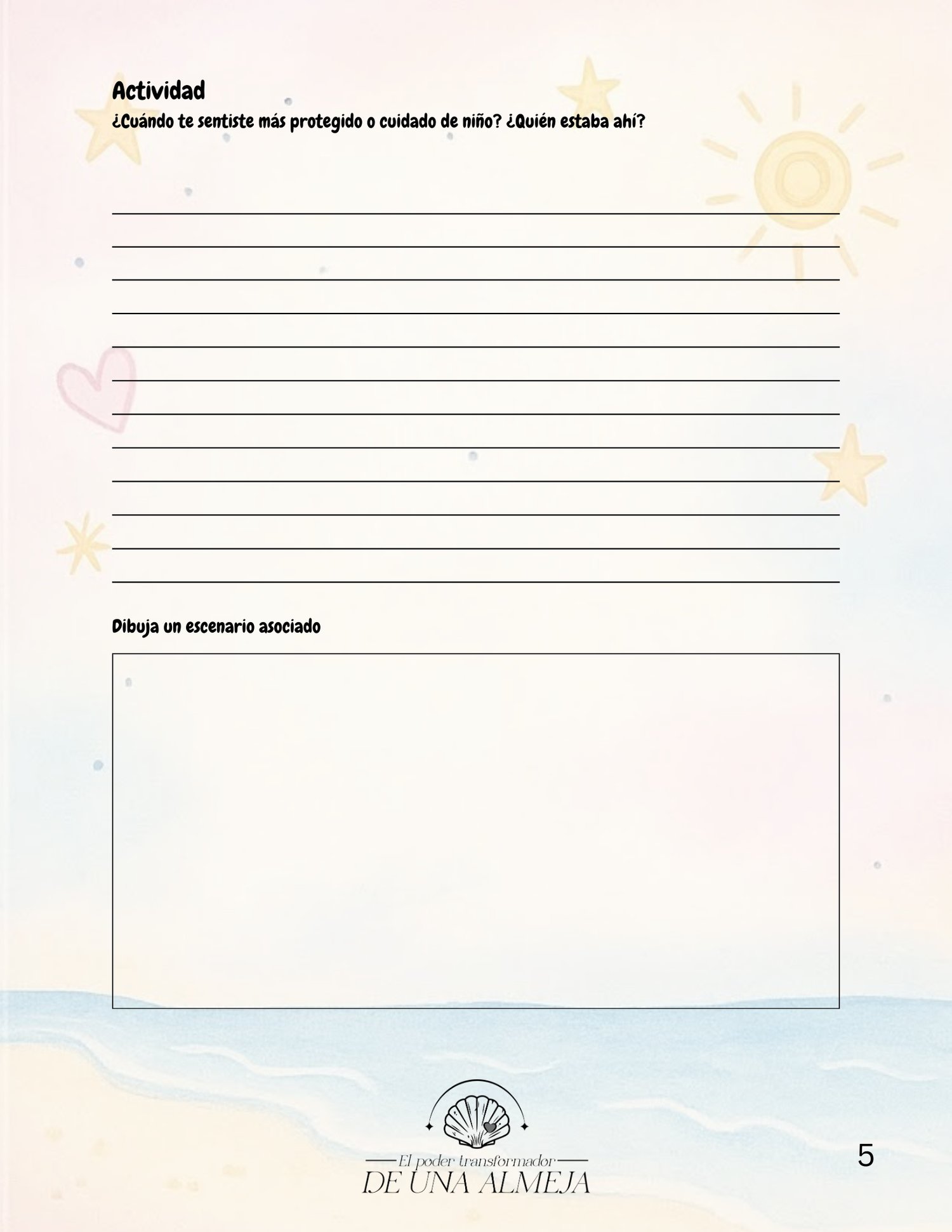 Este playbook incluye 46 actividades cuidadosamente diseñadas para ayudarte a explorar, sanar y expresar a tu Niño Interior con imaginación, suavidad y autenticidad. Cada página es una invitación a detenerte, sentir, recordar y crear.