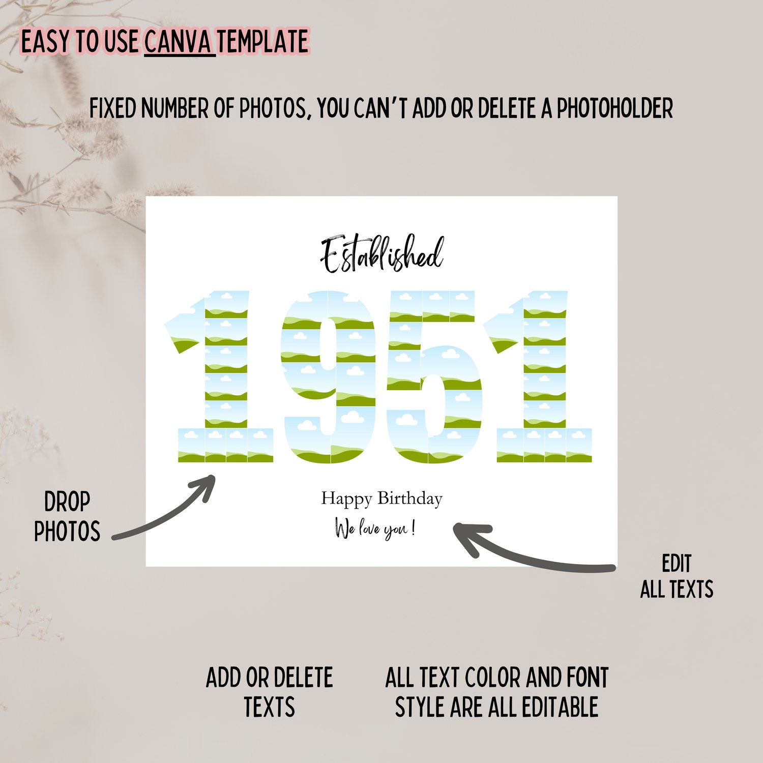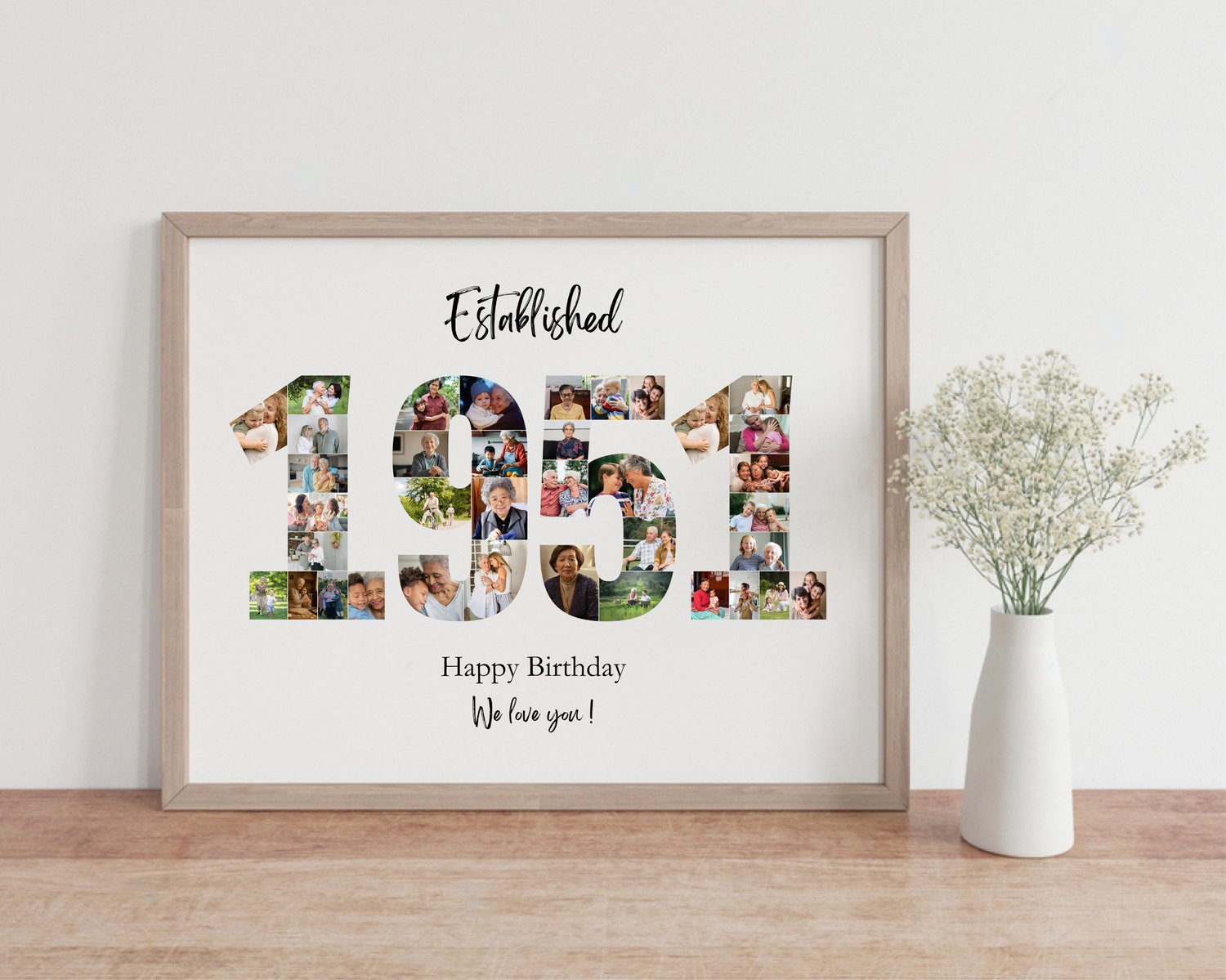 1951 Birthday Anniversary Photo Collage Gift, Custom Years Photo Print (Digital Download)