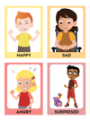 - A set of visually appealing flashcards, each depicting a different emotion—from happy and sad to excited and calm. These flashcards cover a wide range of emotions, allowing children and adults alike to explore and identify their feelings.