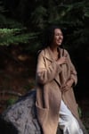 Wrap yourself in effortless warmth and style with Dolan, a timeless hand-knit coat. Designed with versatility in mind, this pattern offers two options: a long, elegant coat with deep pockets for practicality and a shorter, chic jacket for a more minimalist look. The lapel collar is double-knit, adding structure and coziness, while the long coat version features a back hem slit for ease of movement. Knit with Woolfolk Flette Bulky, a luxuriously soft boucle yarn, this coat showcases incredible texture while remaining lightweight and warm. Whether worn as a winter coat or a stylish outer layering piece, this design is a modern classic that will elevate your handmade wardrobe for years to come.