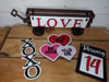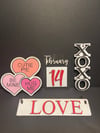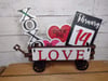 Valentines Day ipset for the interchangable wagon comes with three valentines hearts,February 4th page, hugs and kisses signals a Love sign with hooks for the front of wagon. They range in size 5-8" and are available painted or unpainted.